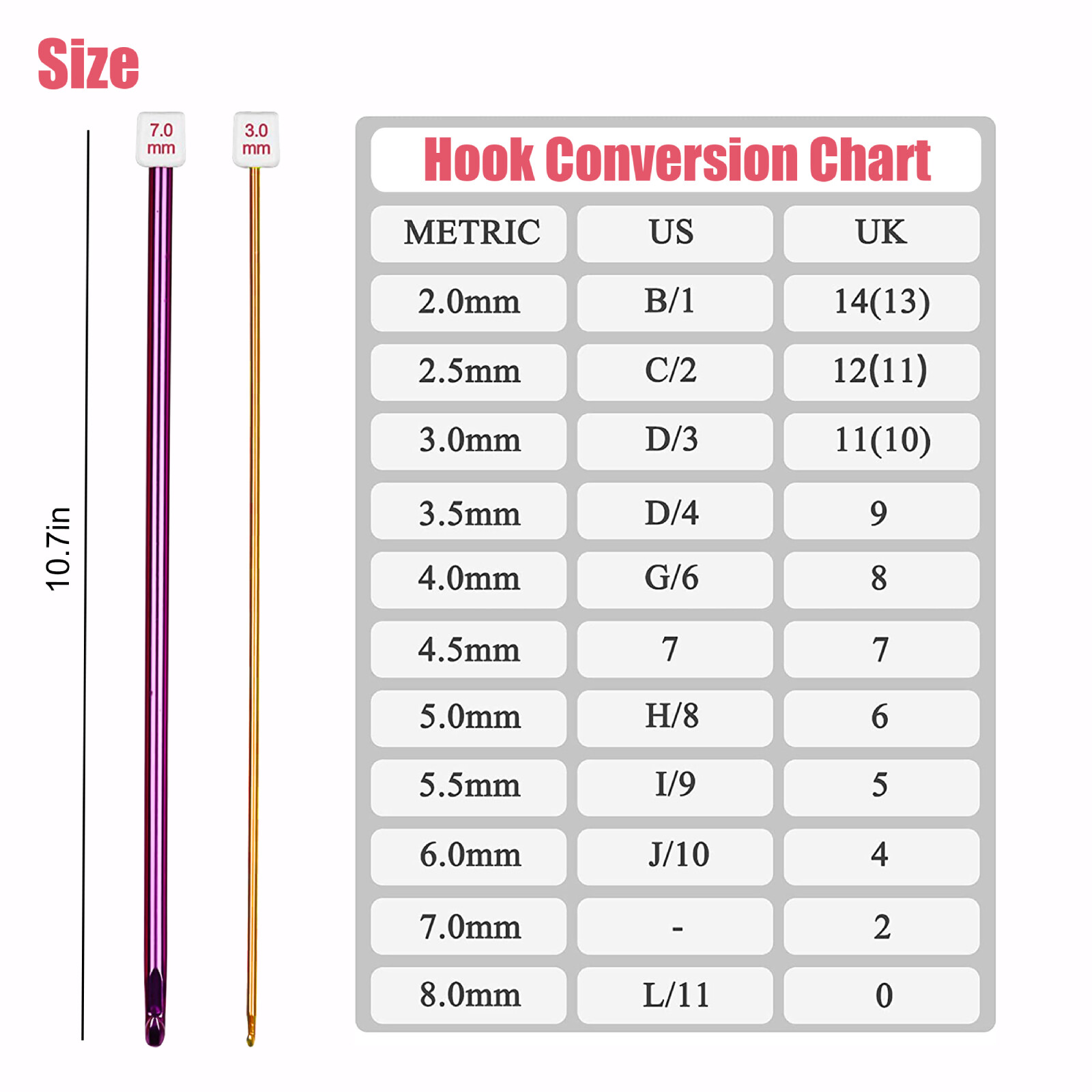 11pcs Tunisian Crochet Hooks Afghan Aluminum Knitting Needles Set 2mm to 8mm