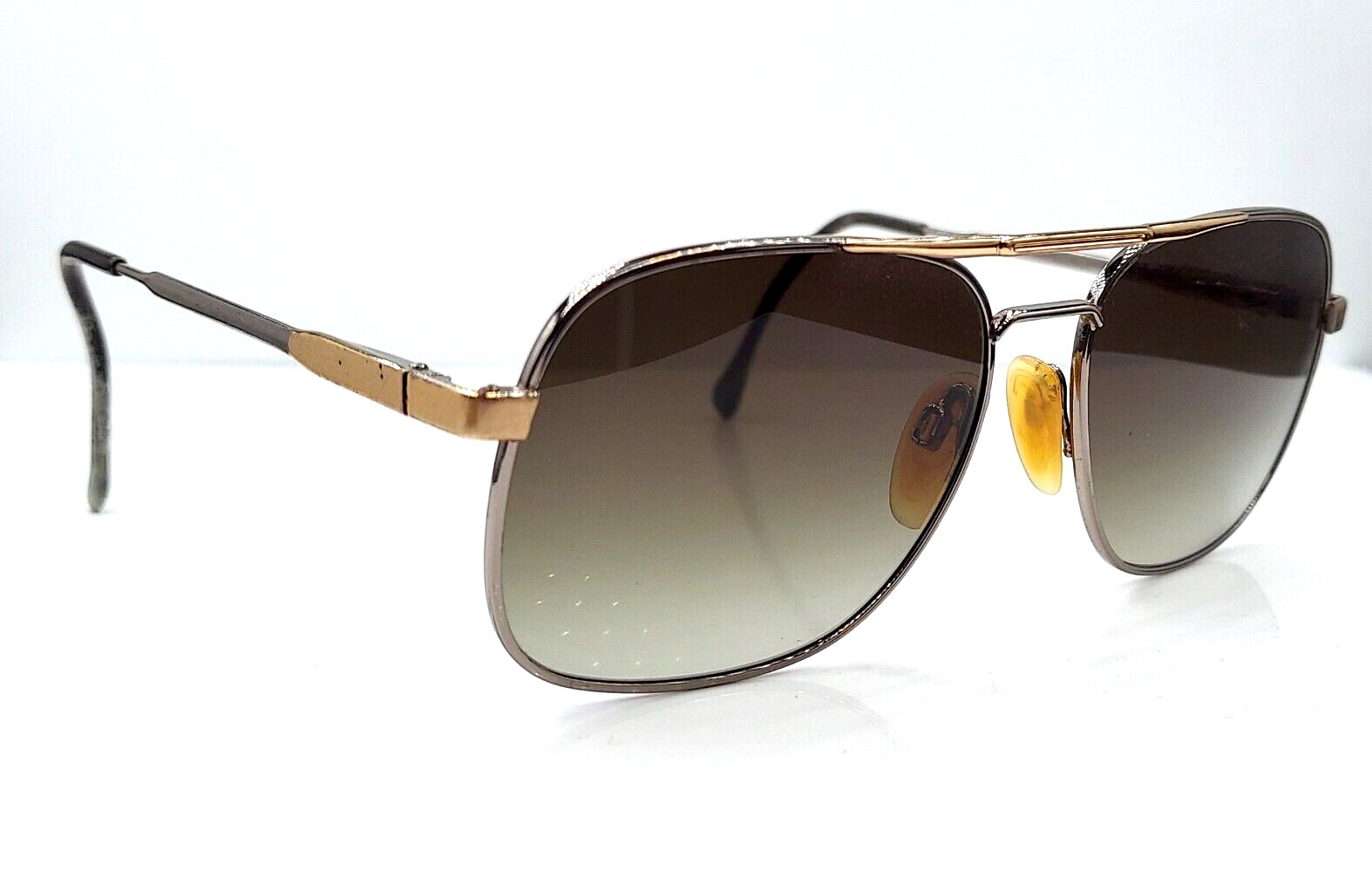 как выглядит Vintage Luxottica Carlos Gunmetal Gold Pilot Sunglasses Italy W/NEW LENSES фото