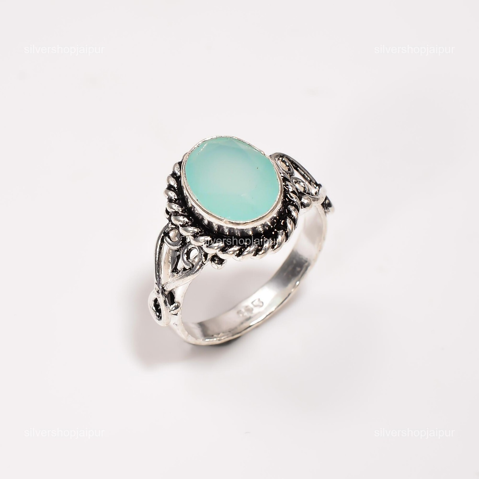 Aqua Chalcedony Gemstone 925 Silver Jewelry Statement Wife Promise Ring All Size