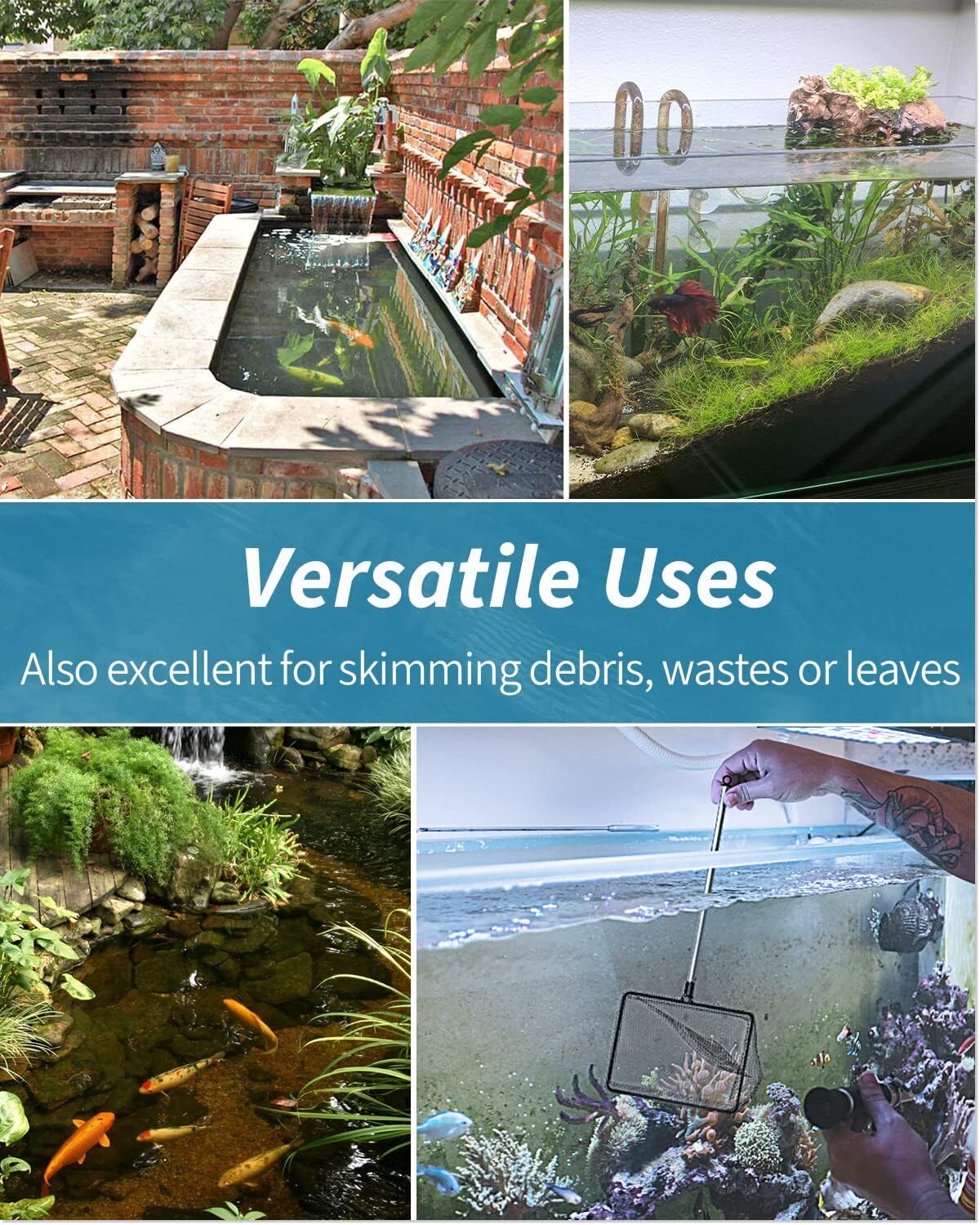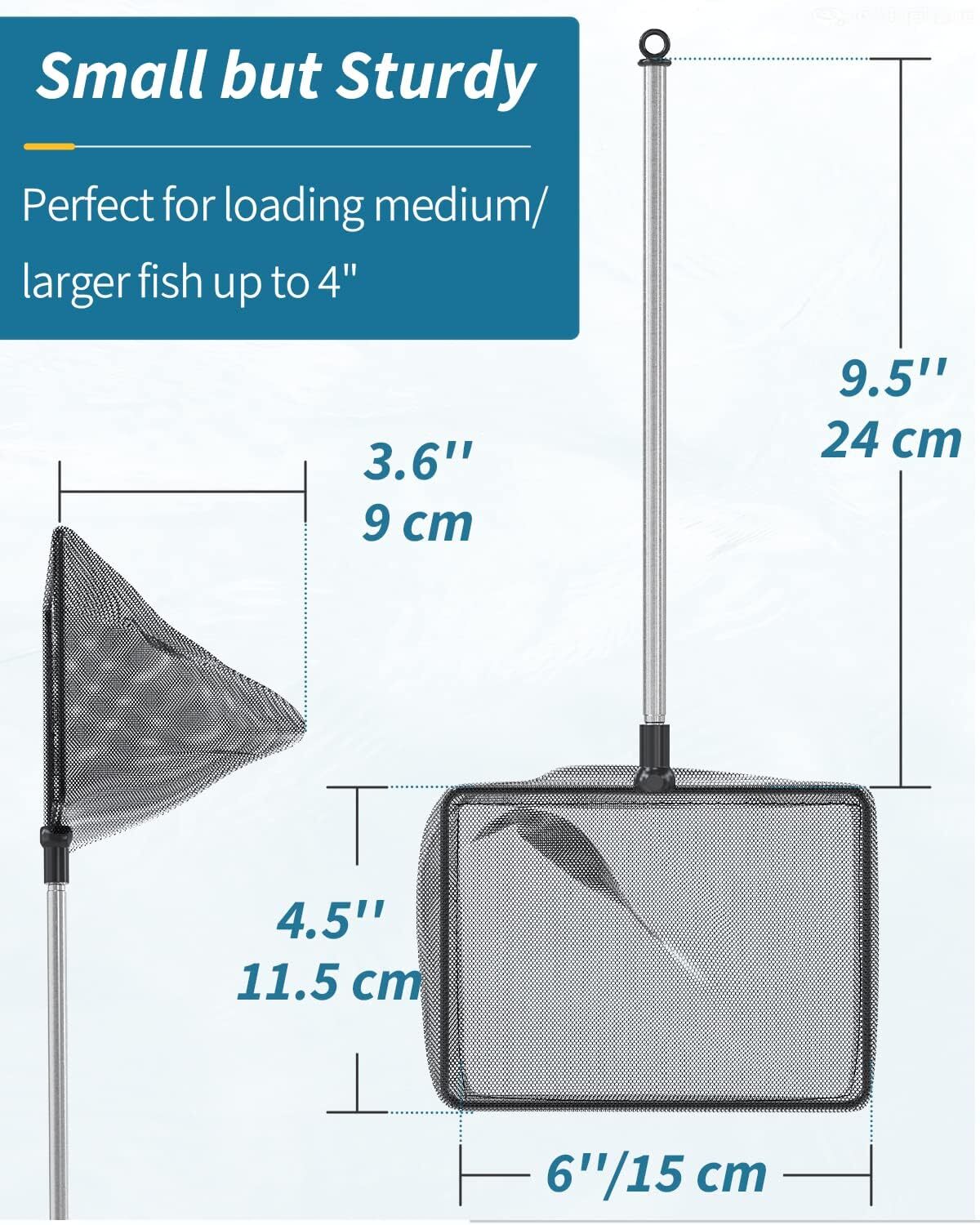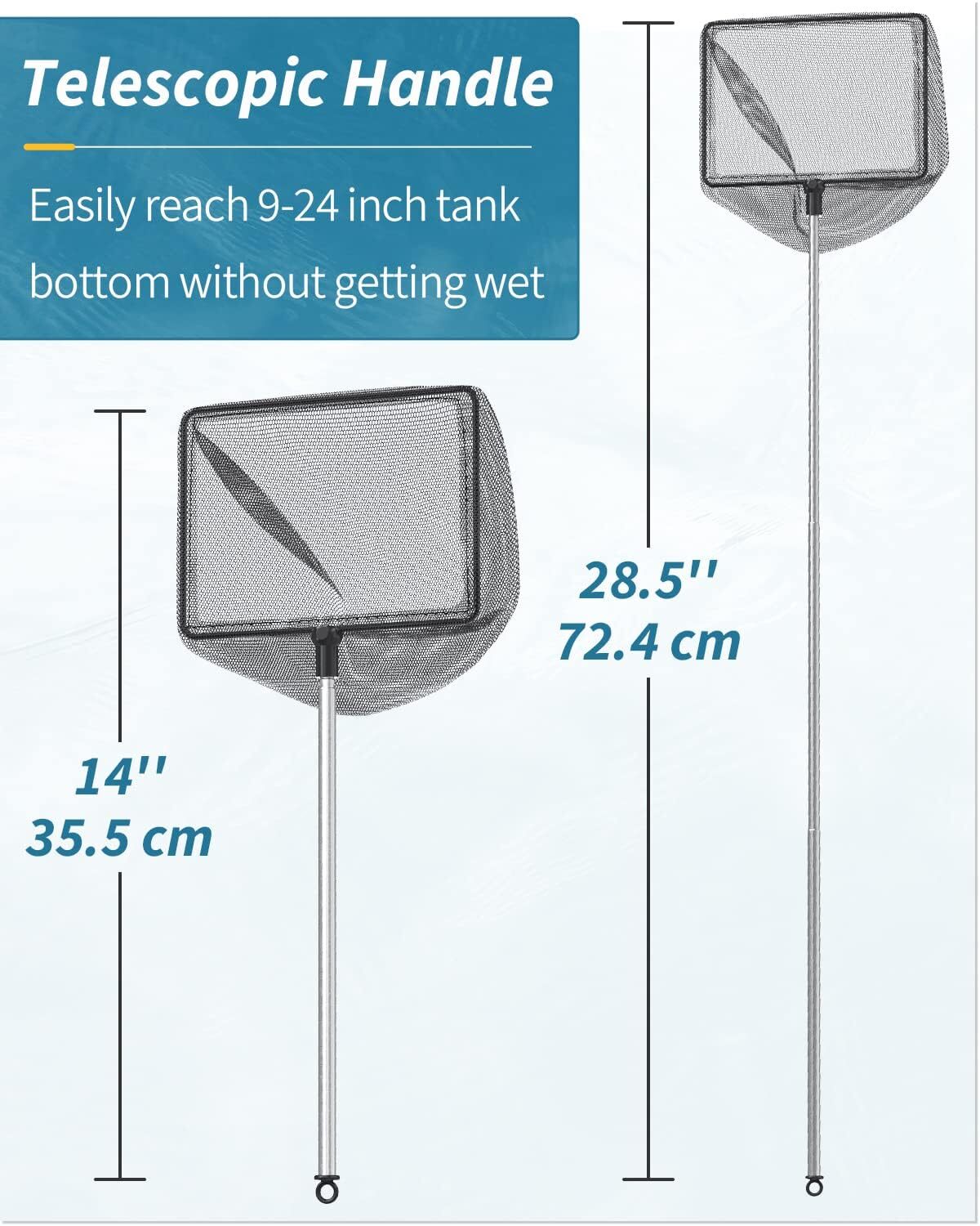 6 Inch Aquarium Fish Net w/ Extendable 9-24 Inch Long Handle for Fish Tank Pond