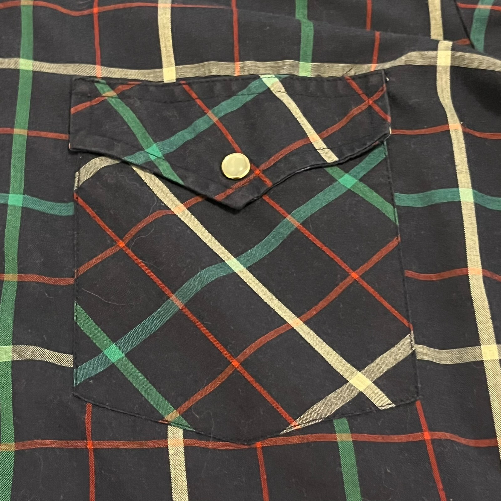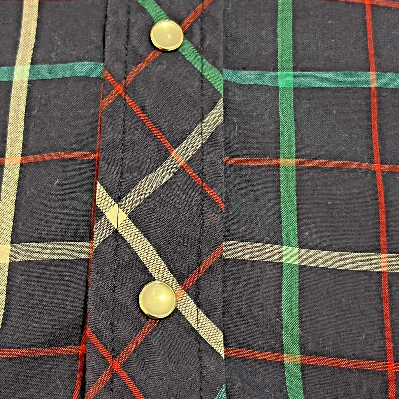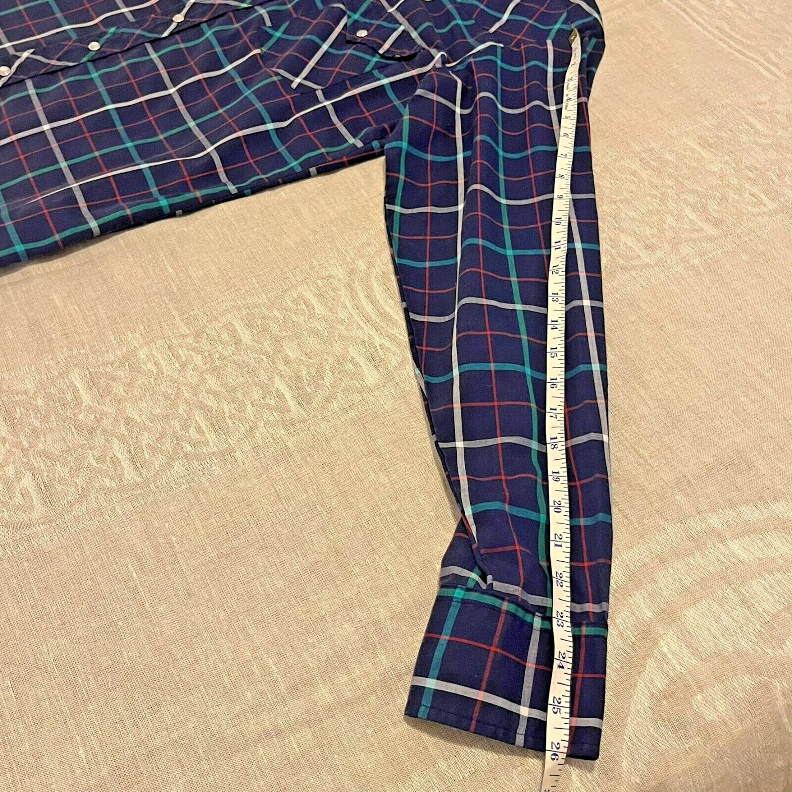 Lee Mens Shirt Size L Blue Red Pearl Snap Button-Up Western Plaid Slim Retro