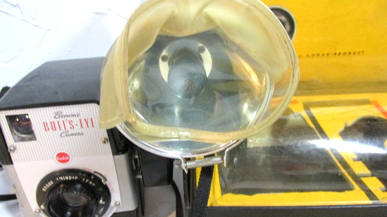 как выглядит VINTAGE 1950s KODAK BROWNIE BULLS-EYE CAMERA/FLASH OUTFIT фото