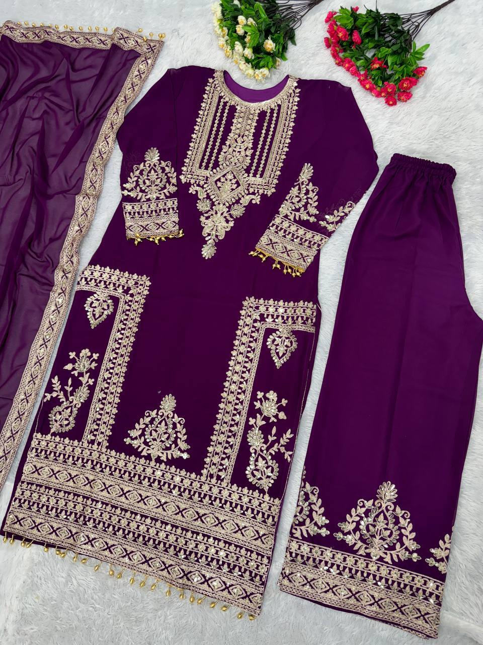 как выглядит Latest Presenting Faux Georgette Wine Color Top Palazzo With Dupatta For Party фото