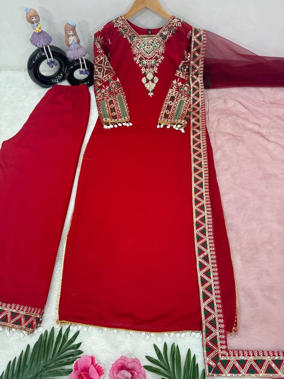 Ethnic Wear Vichitra Silk Salwar Kameez With Red Dupatta For Women And Girls