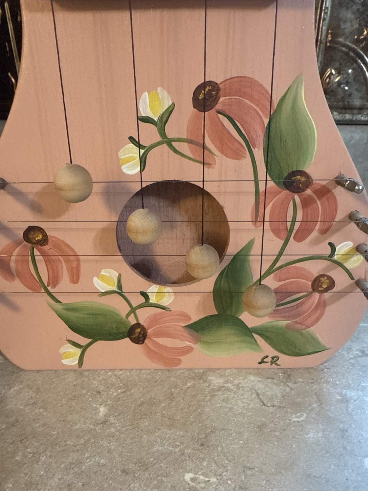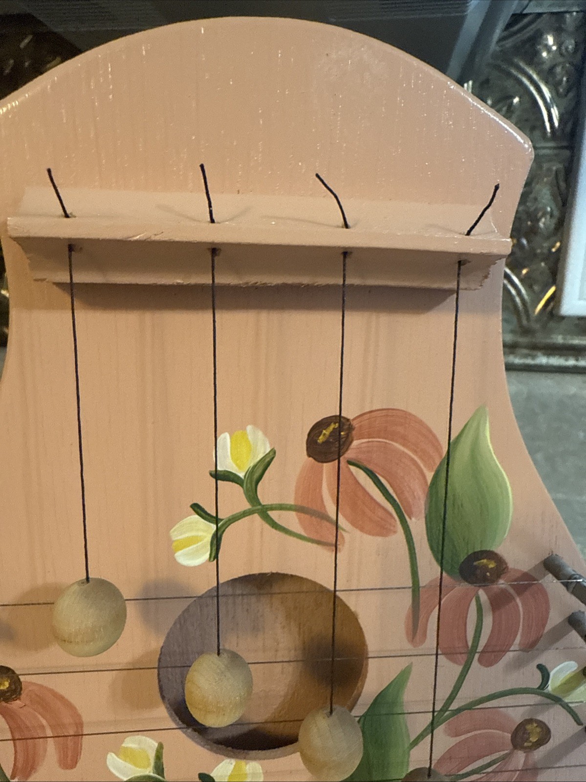 Vintage Wooden Wall Dulcimer hand painted Carved harp 1982 Stamped.