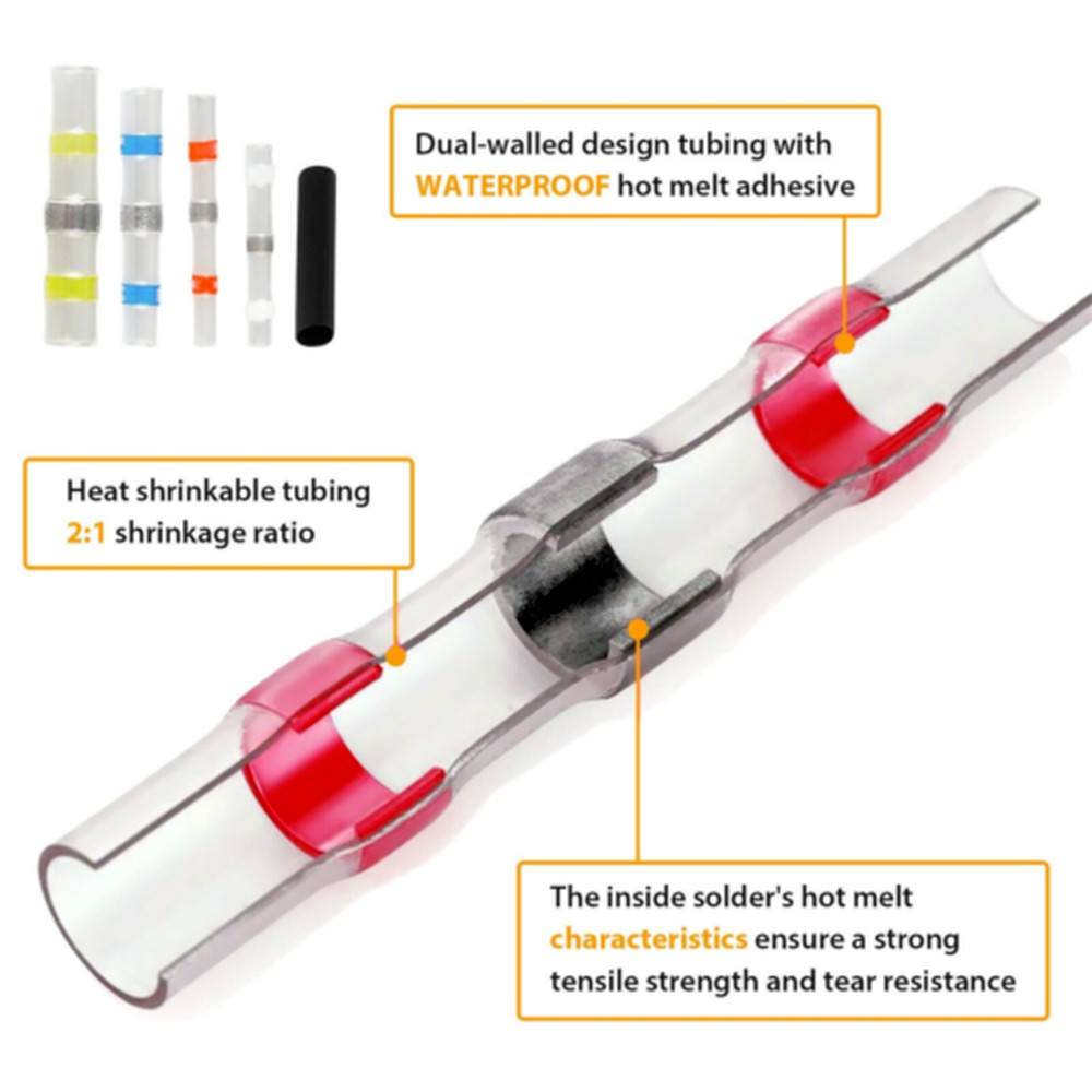 400PCS Waterproof Solder Seal Heat Shrink Wire Butt Terminal Connectors Kit Set