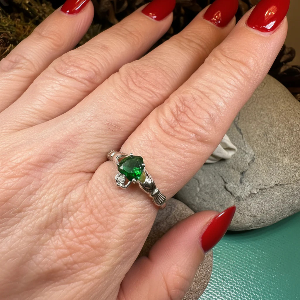 Claddagh Ring Irish Ireland Gift Ladies Promise Love Green Ring 925
