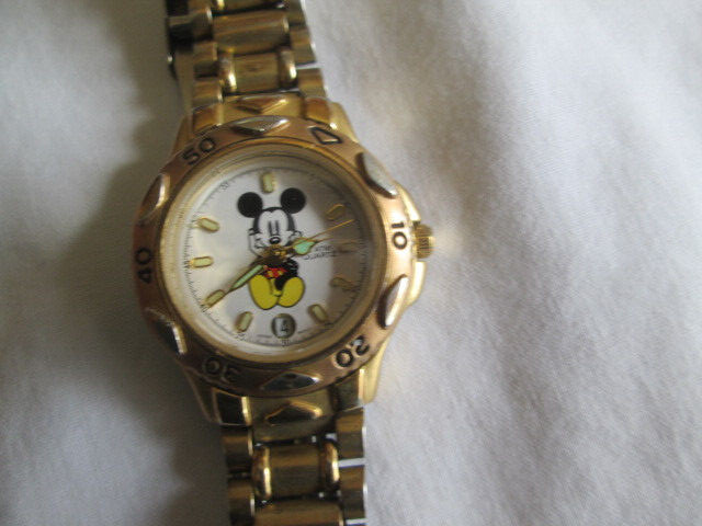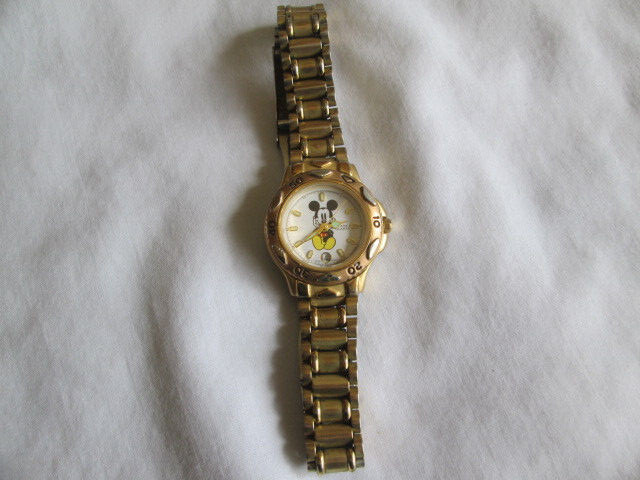 как выглядит Vintage DISNEY Time Works Mickey Mouse Gold Tone Quartz Watch Snap Bracelet Work фото