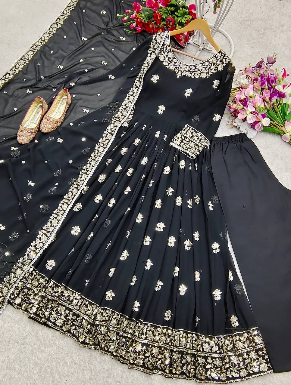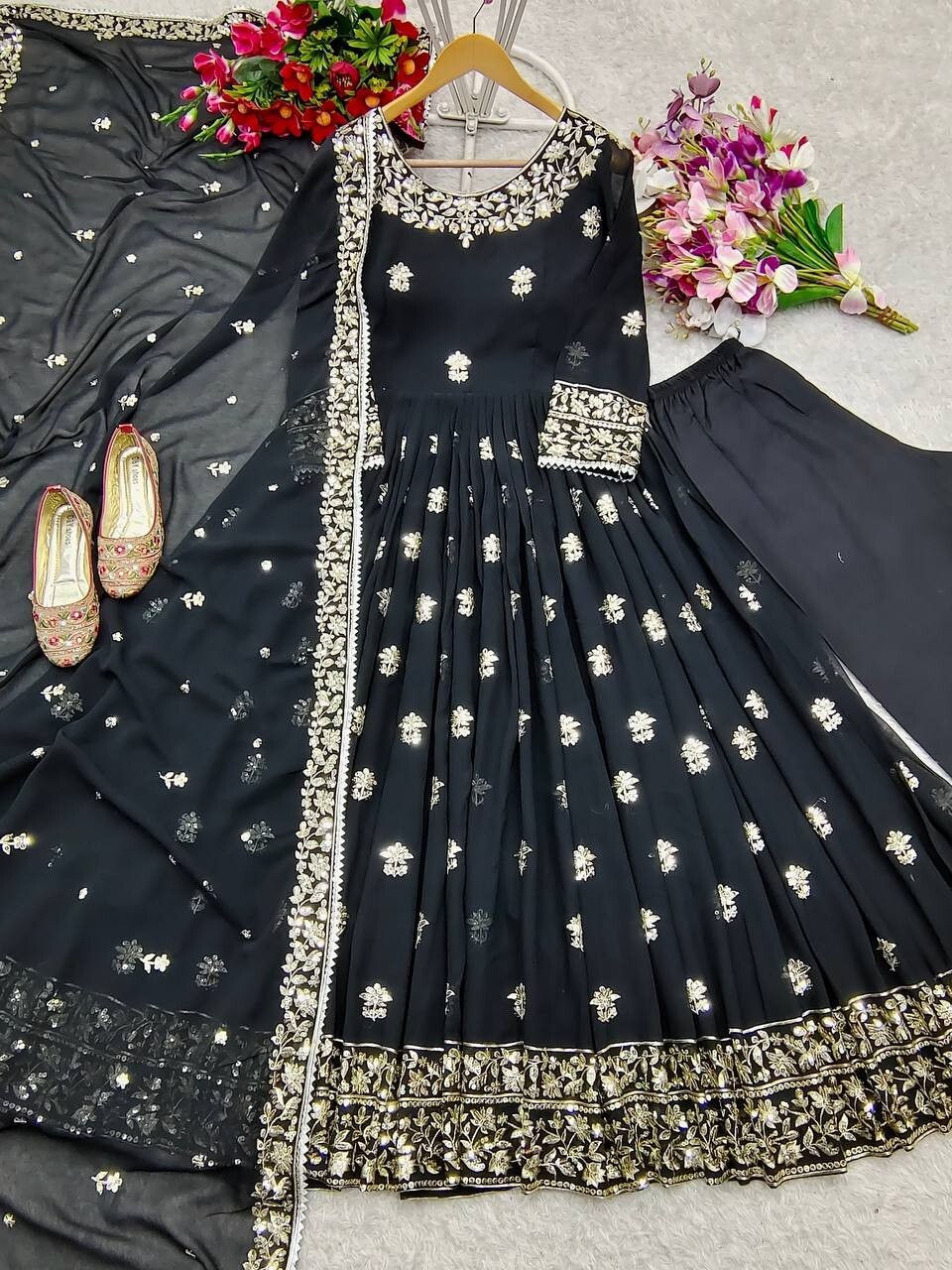 как выглядит Presenting Pure Georgette Black Salwar Kameez And Dupatta For Reception Wear фото