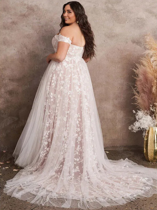 как выглядит Plus Size Beach Wedding Dresses Full Lace Tulle vestido de novia Off Shoulder фото