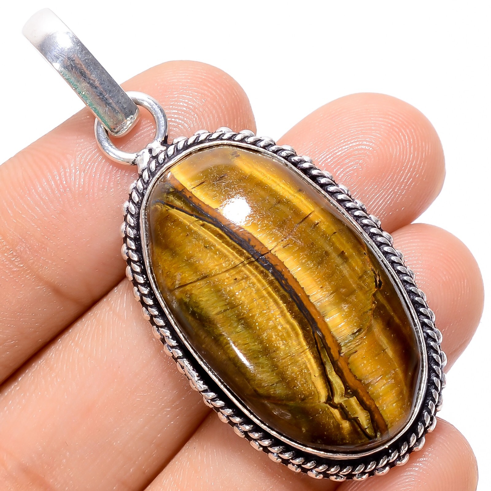 как выглядит Natural Tiger Eye Large Gemstone Handmade Vintage Pendant 2" Anniversary Gift фото