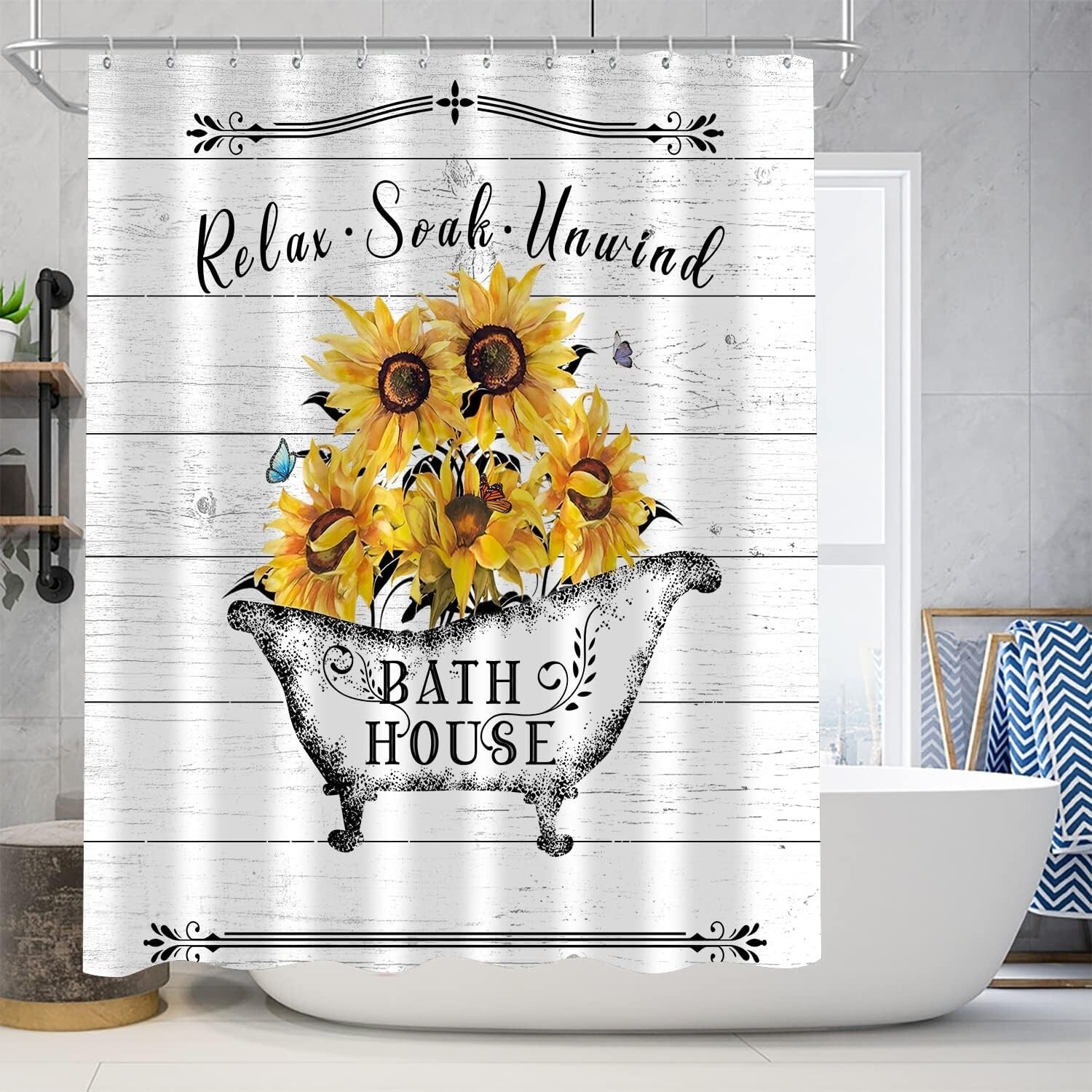 Juego De 4 Piezas Cortinas De Ducha Con Girasoles Y Alfombras De Ba o NUEVO US.