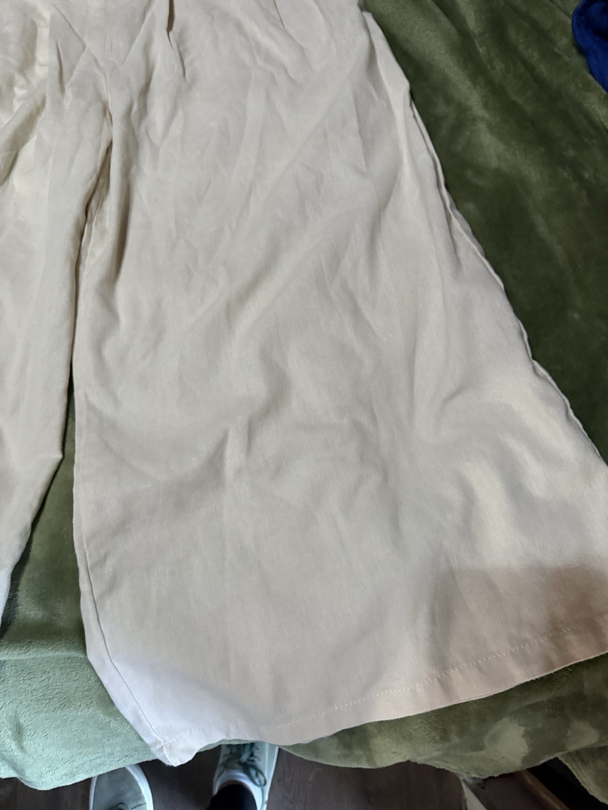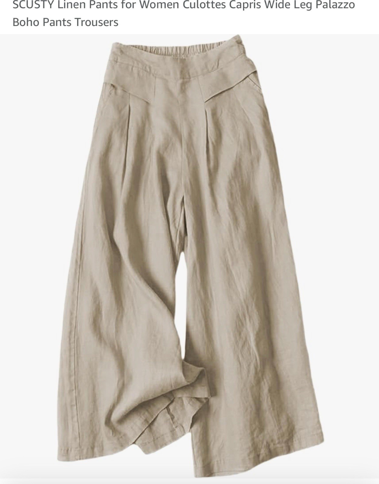 как выглядит Cream Linen Pants for Women Culottes Capris Wide Leg Palazzo Boho Pants Trousers фото