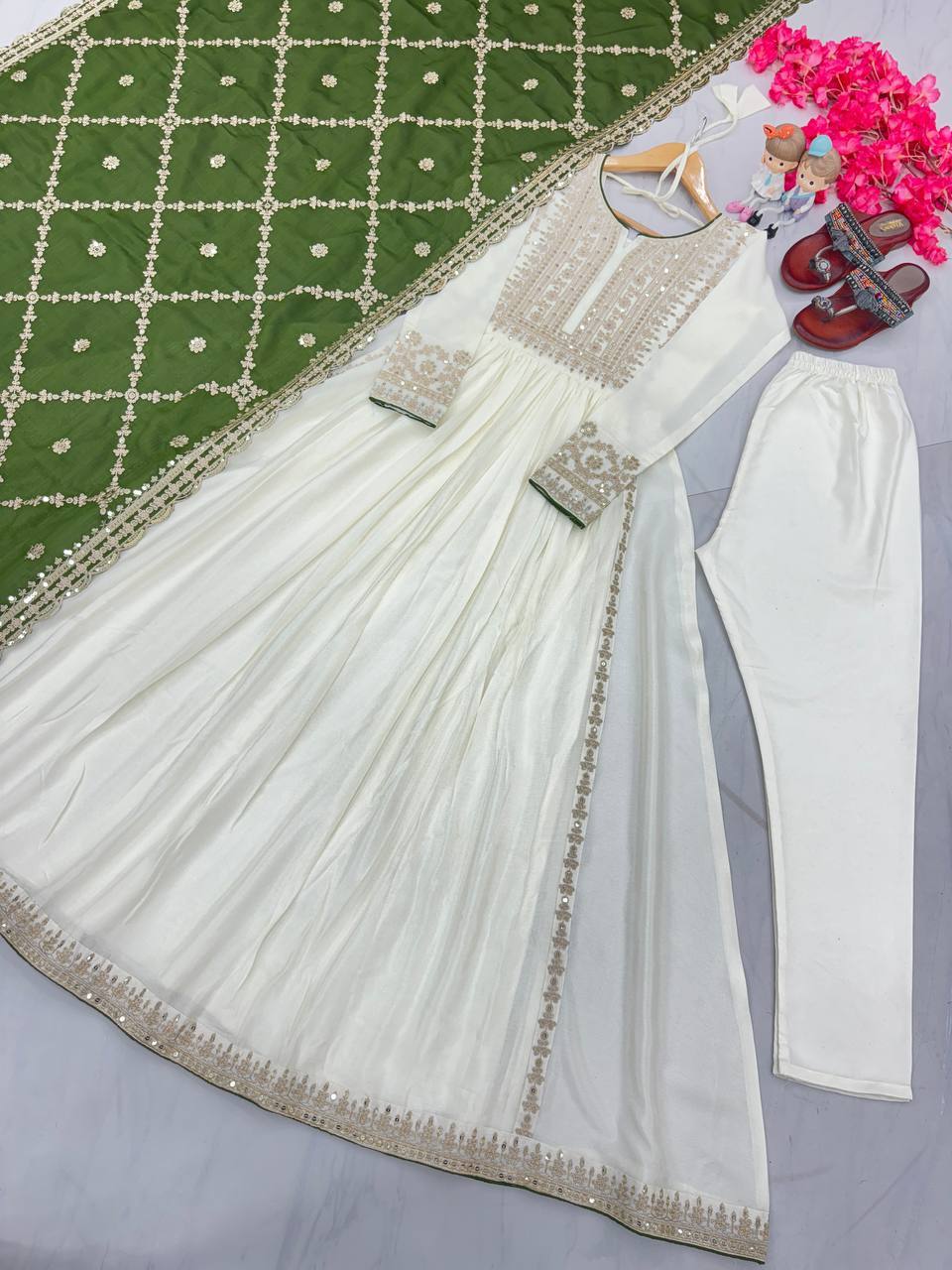 LATEST BOLLYWOOD CHINNON SILK GOWN WITH FANCY DUPATTA FOR WOMEN AND GIRLS