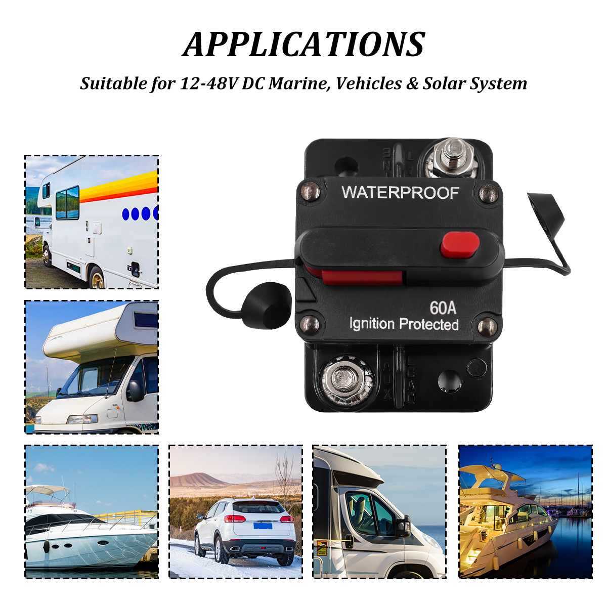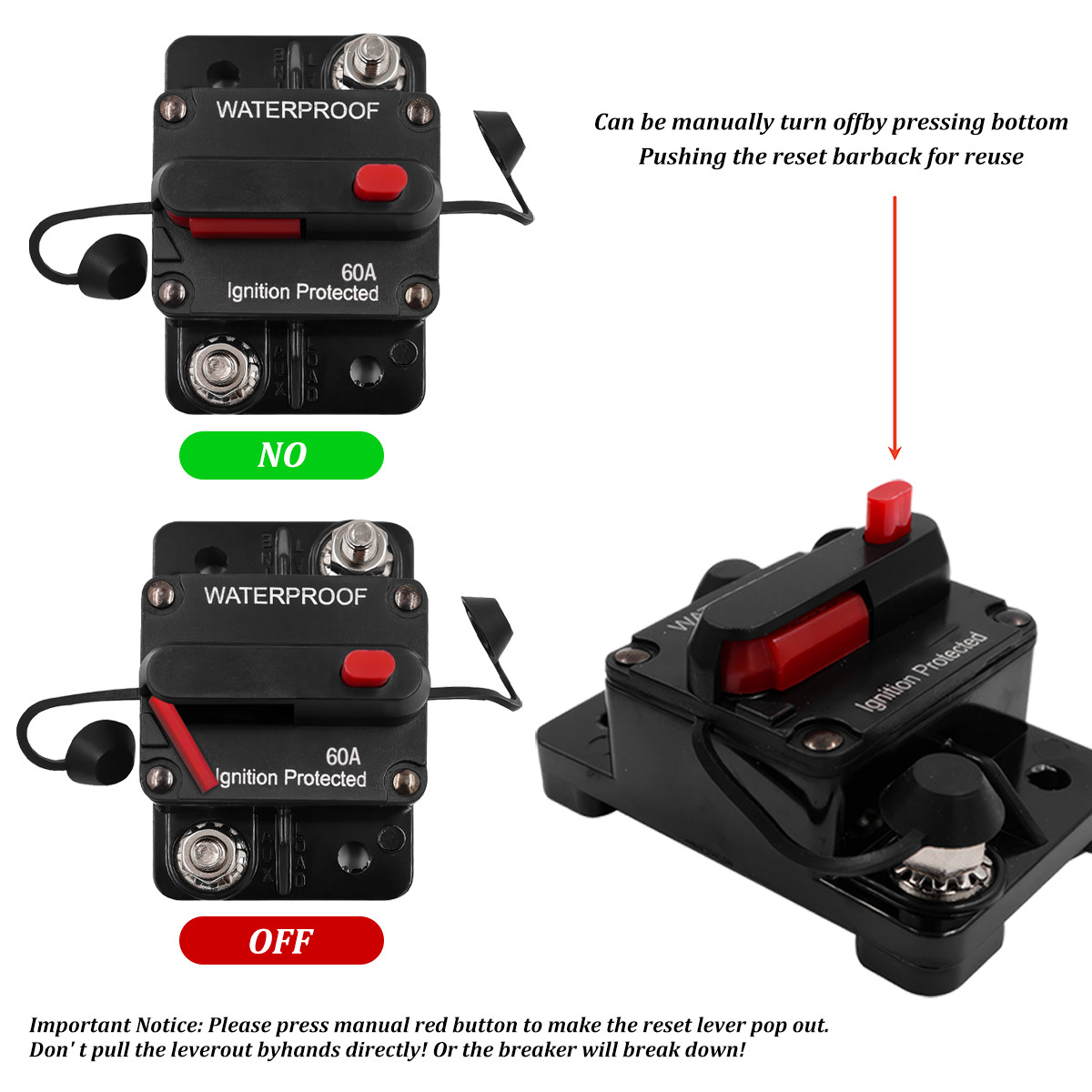 60A AMP Circuit Breaker Fuse Reset 12V-48V DC Car Boat Marine Auto Waterproof US