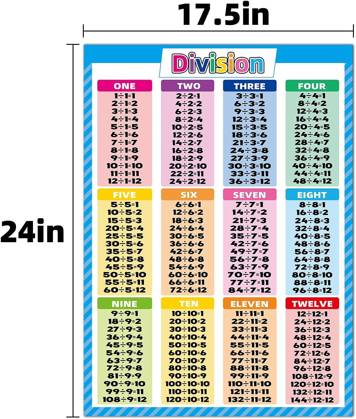 2 Pack - Multiplication Tables and Division Poster Set,18 X 24 Inch Lamited Math