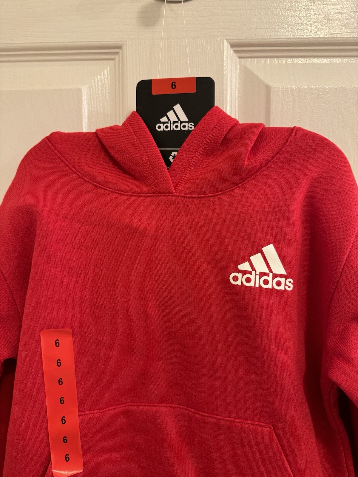 Adidas Youth 2-Piece Red Hoodie Black Track Pants Sz 5 6