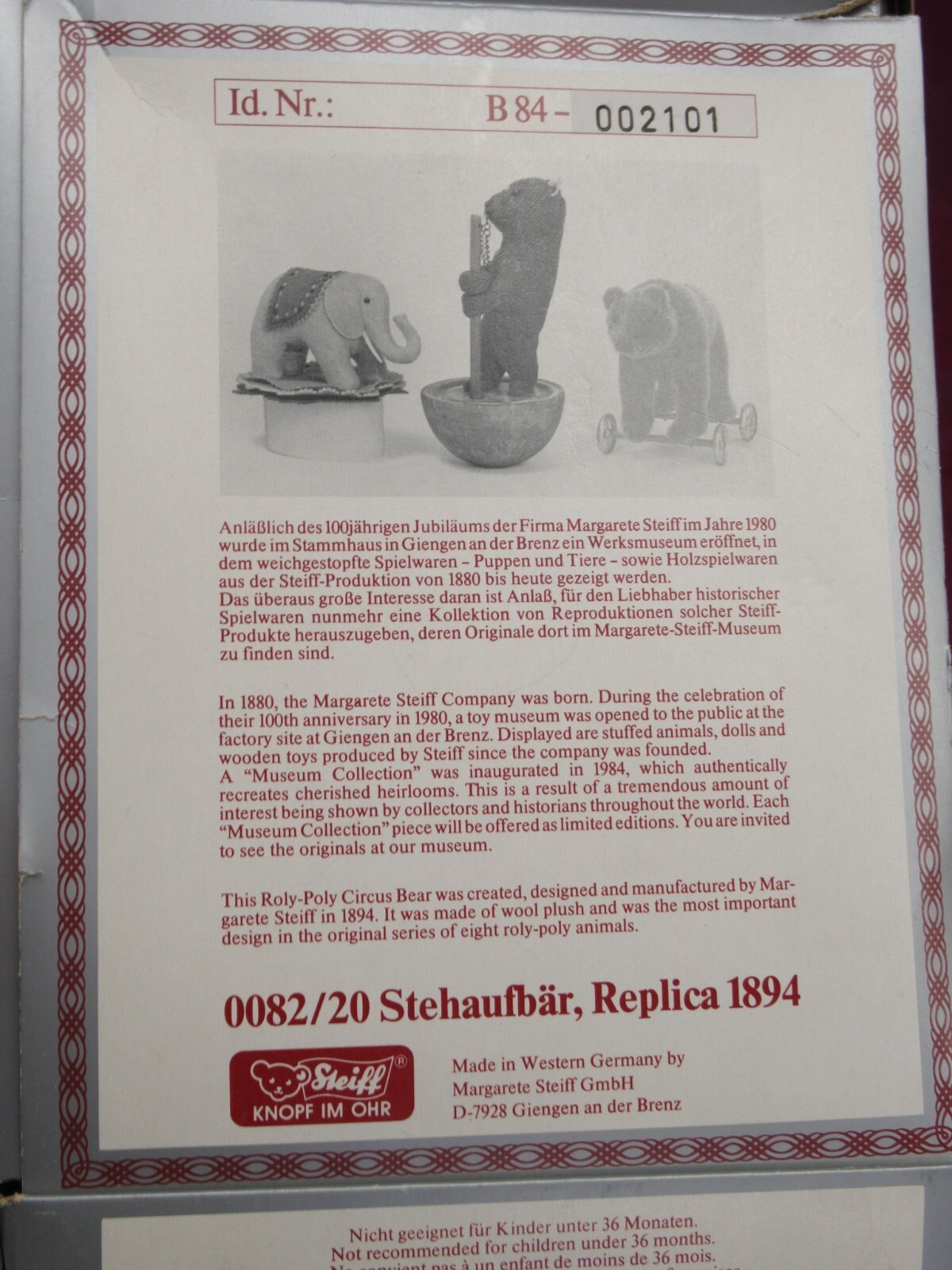 Vintage STIEFF Museum 1894 Replica 0082/20 8 Circus Bear on Pole 1984