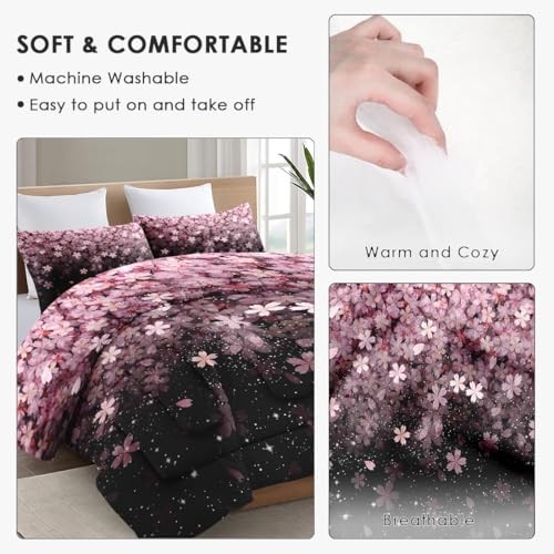 Size Comforter Set with 2 Pillowcases, Spring Cherry Pink Flower Full Multi 7