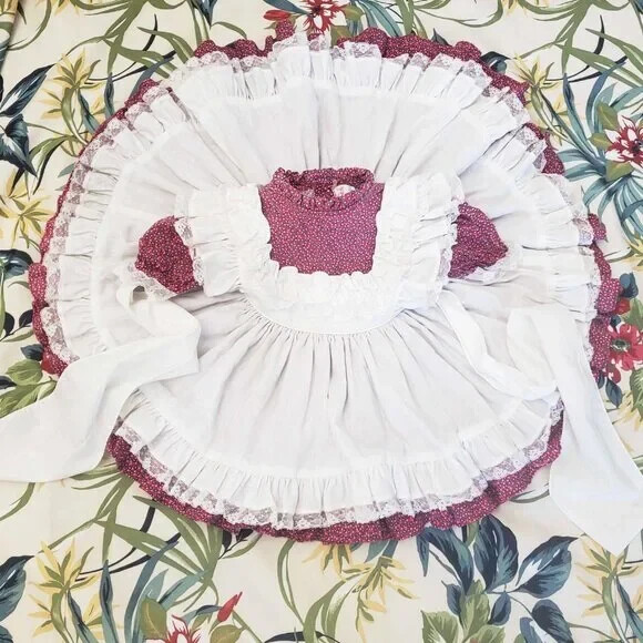 как выглядит Martha s Miniatures Girls VTG Floral Pageant Ruffle Dress Lace Cottagecore Boho фото