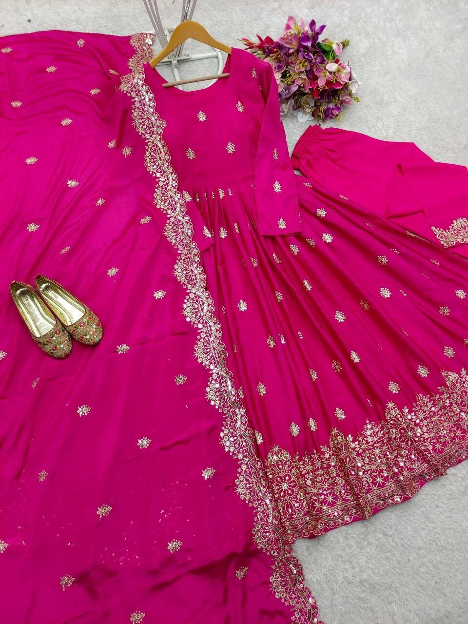 Launching Traditional Wear Pink Chinon Silk Salwar Kameez With Dupatta For Women