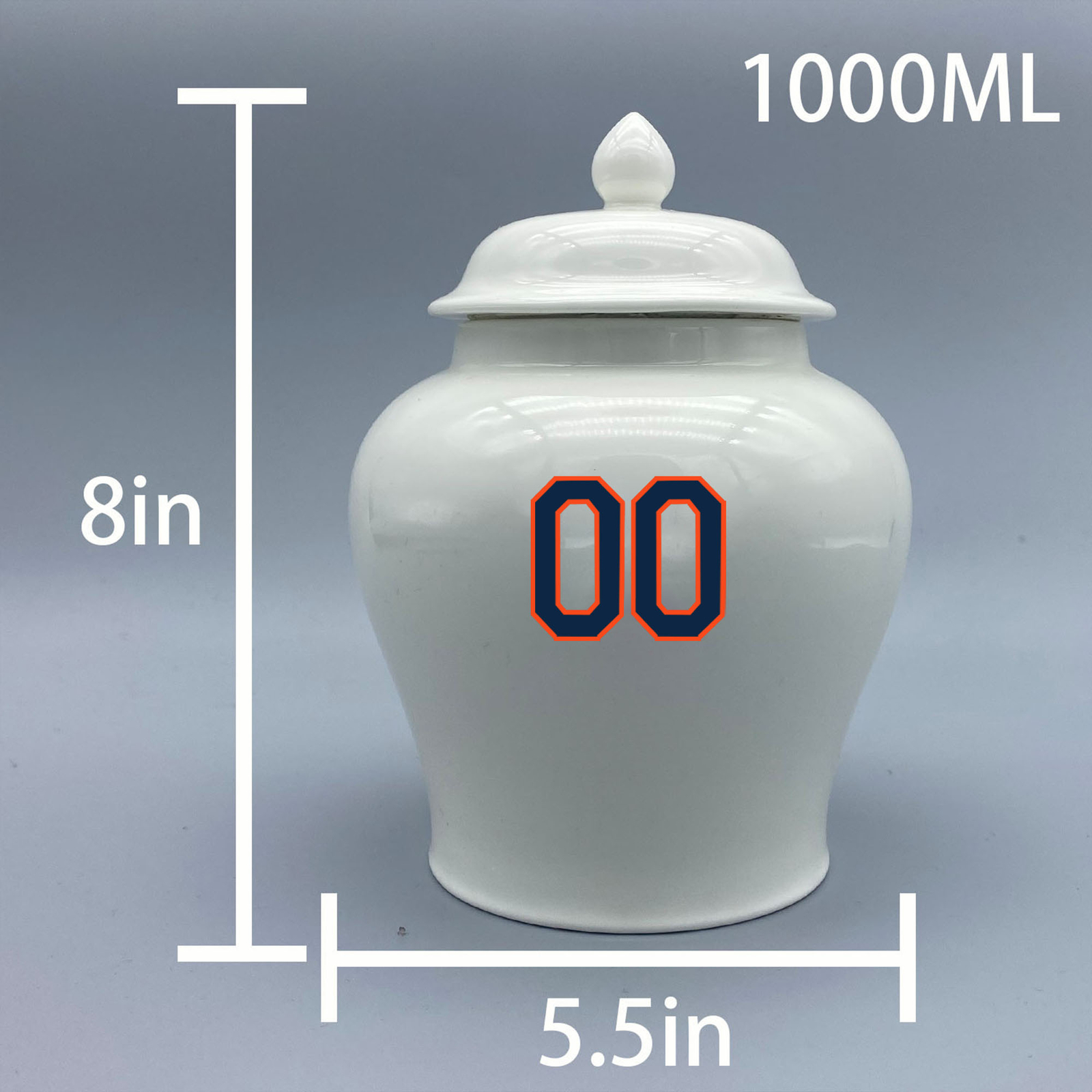 Ceramic Medium Urn for Detroit Tigers Baseball Theme, Custom Text Number