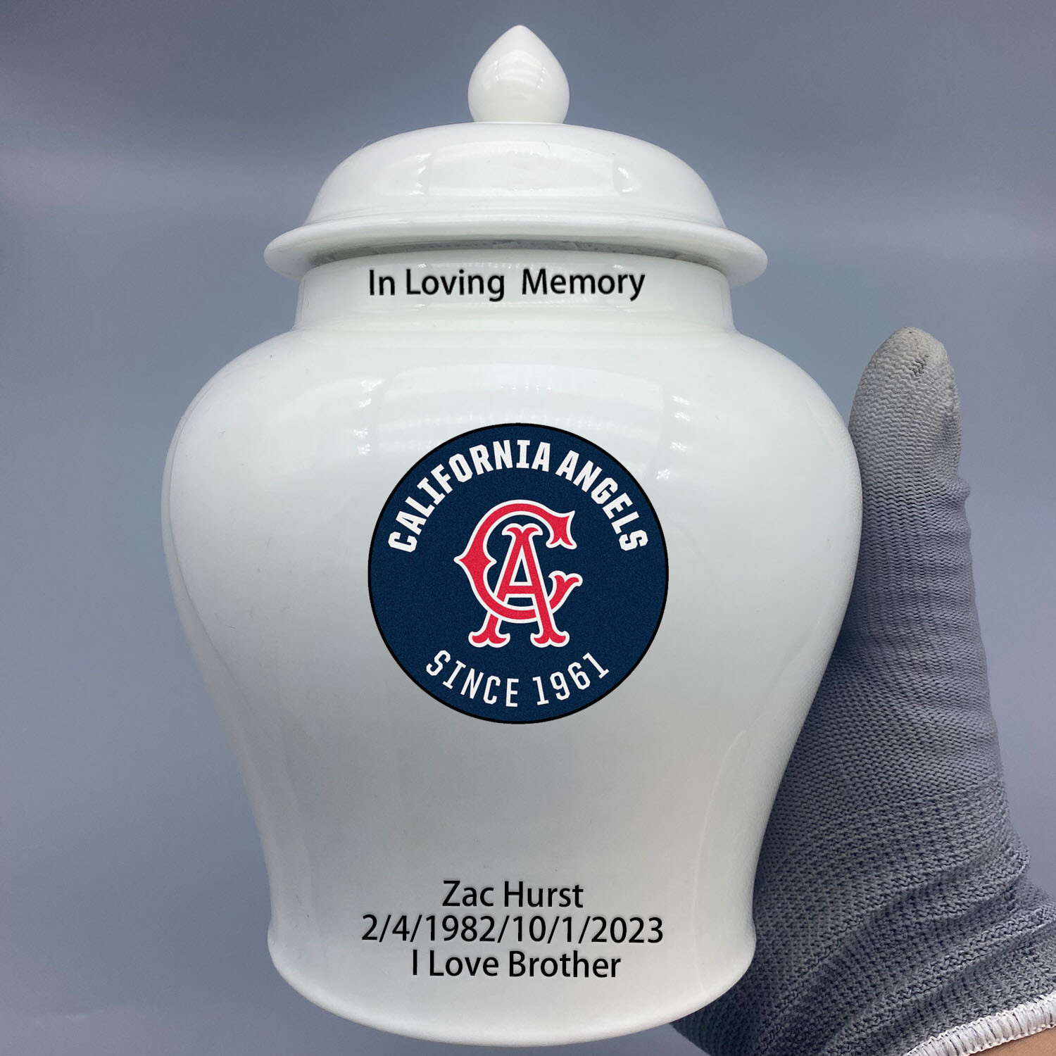 Ceramic Medium Urn for Los Angeles Angels Baseball Theme, Custom Text Number