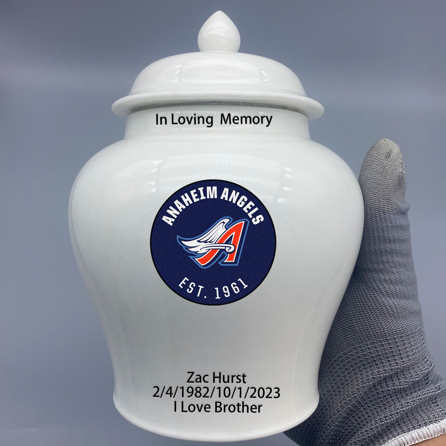 Ceramic Medium Urn for Los Angeles Angels Baseball Theme, Custom Text Number..