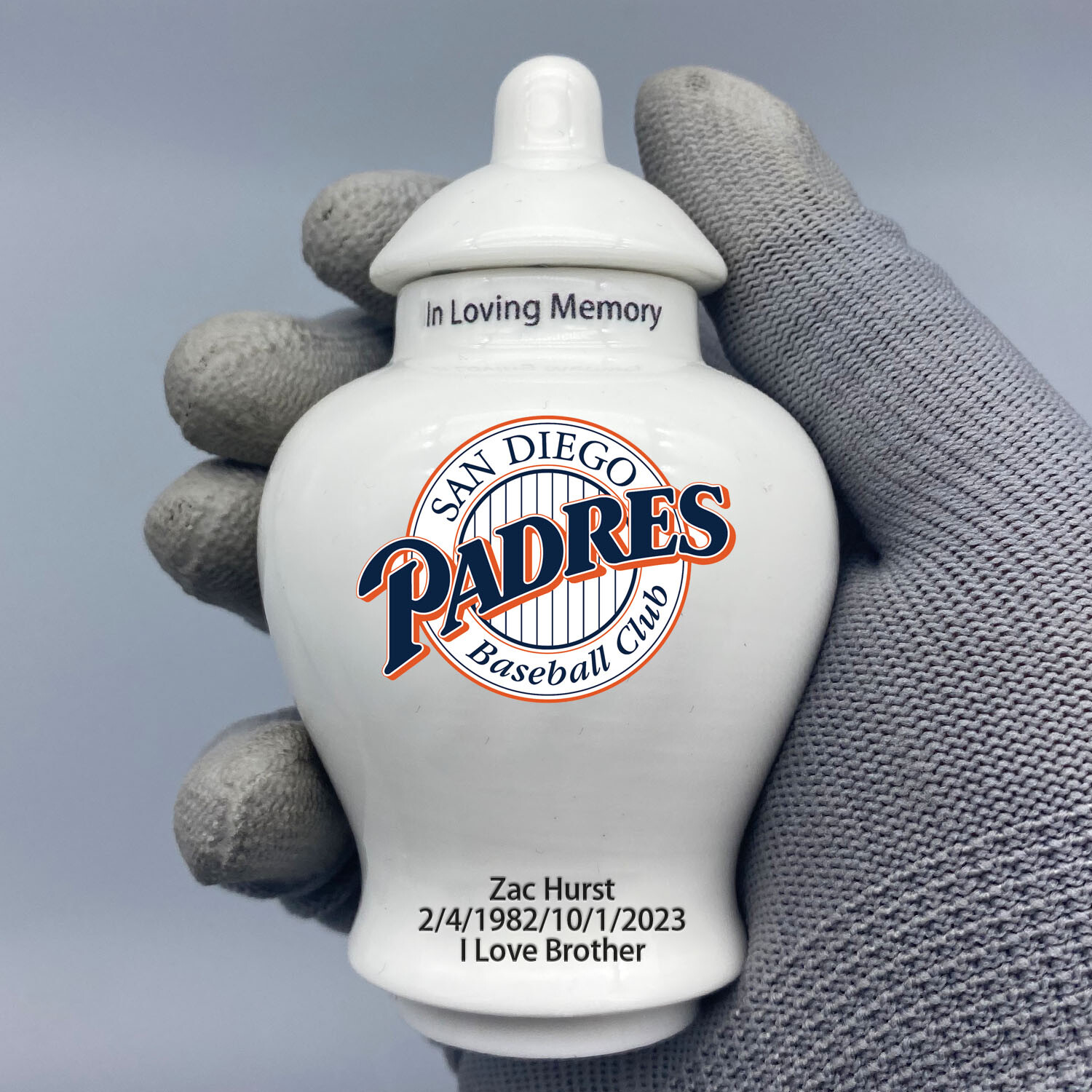 Ceramic Mini Urn for San Diego Padres Baseball Theme, Custom Text Number