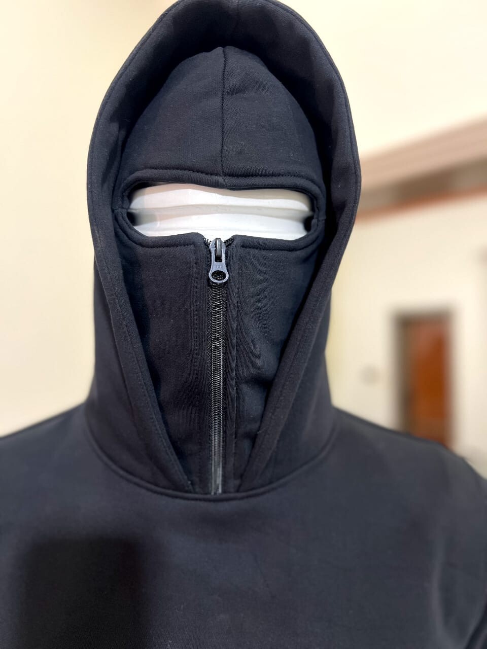 как выглядит Cotton Fleece Ninja hoodie Half Zip up hoodie Balaclava Black Gray hoodie фото