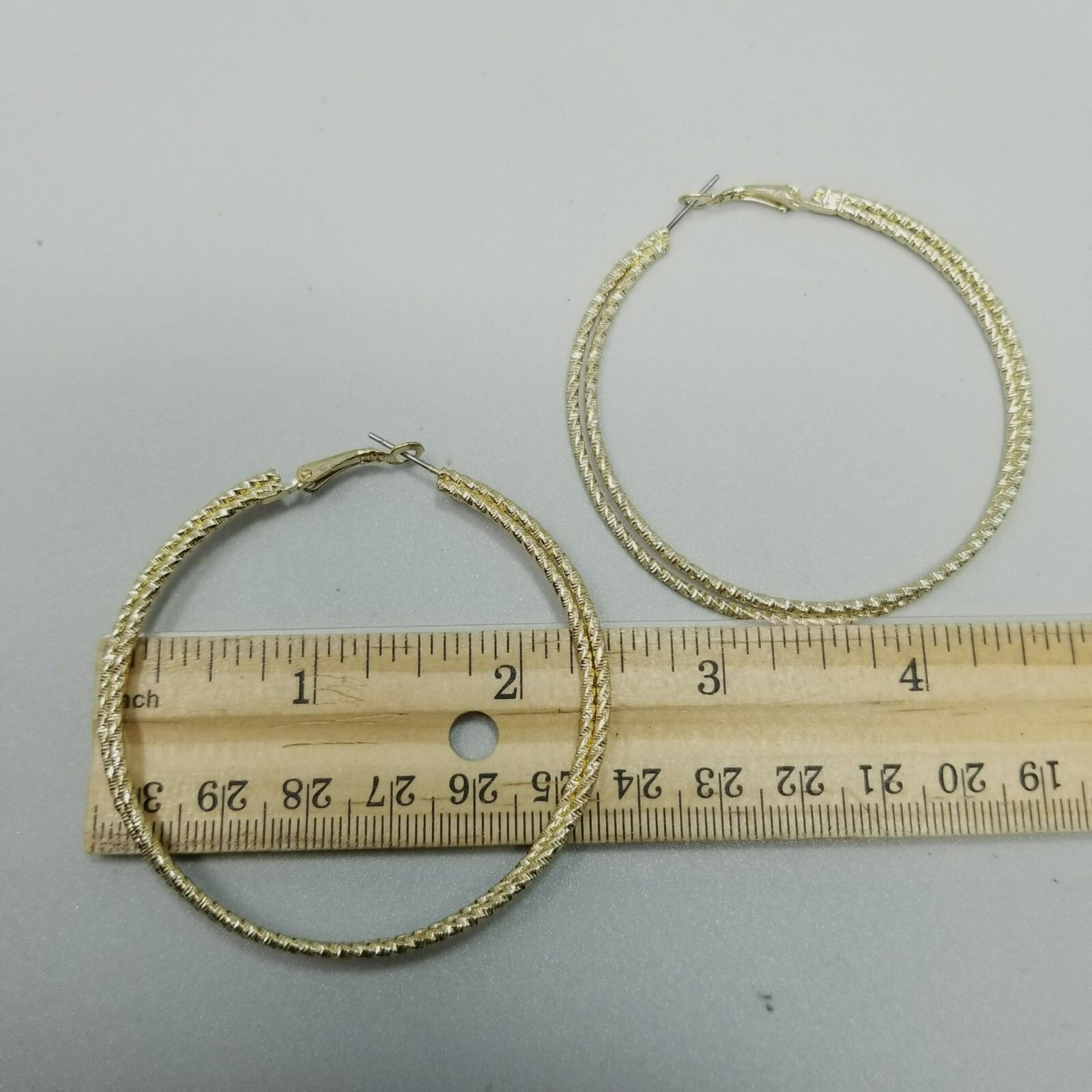 Vintage Large Hoop Earrings Gold Tone 2 1/2 Inch Skinny Twist Light Weight