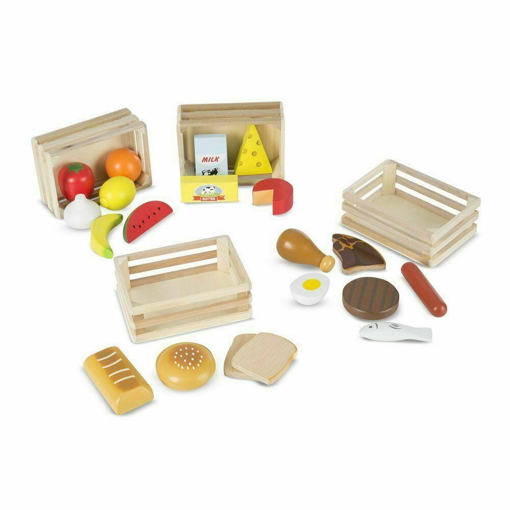MELISSA DOUG WOODEN FOOD GROUPS 21 PCS FOUR BASKETS NEW IN SEALED PACKAGE