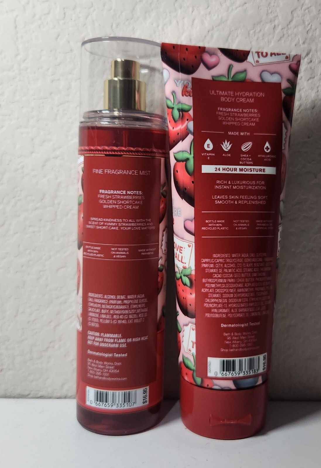 как выглядит Bath Body Works STRAWBERRY POUND CAKE Body Mist Body Wash set of 2 фото