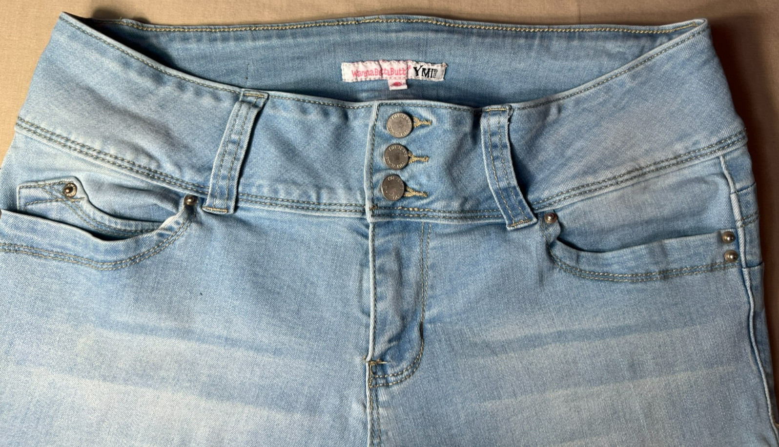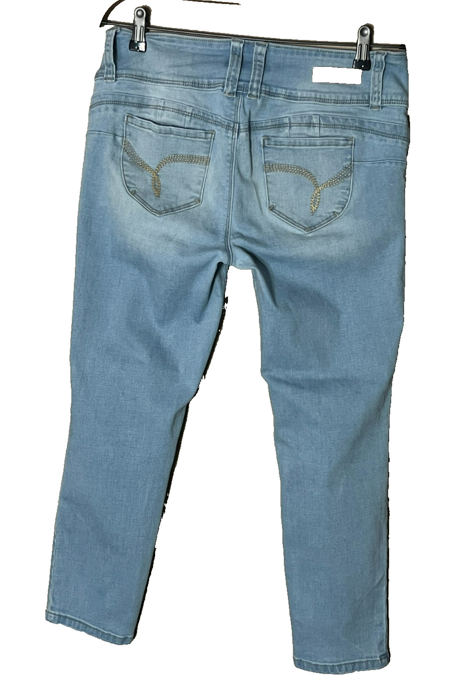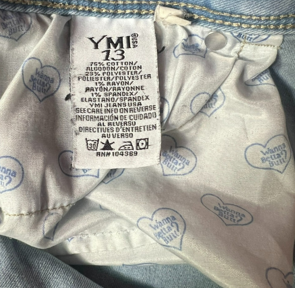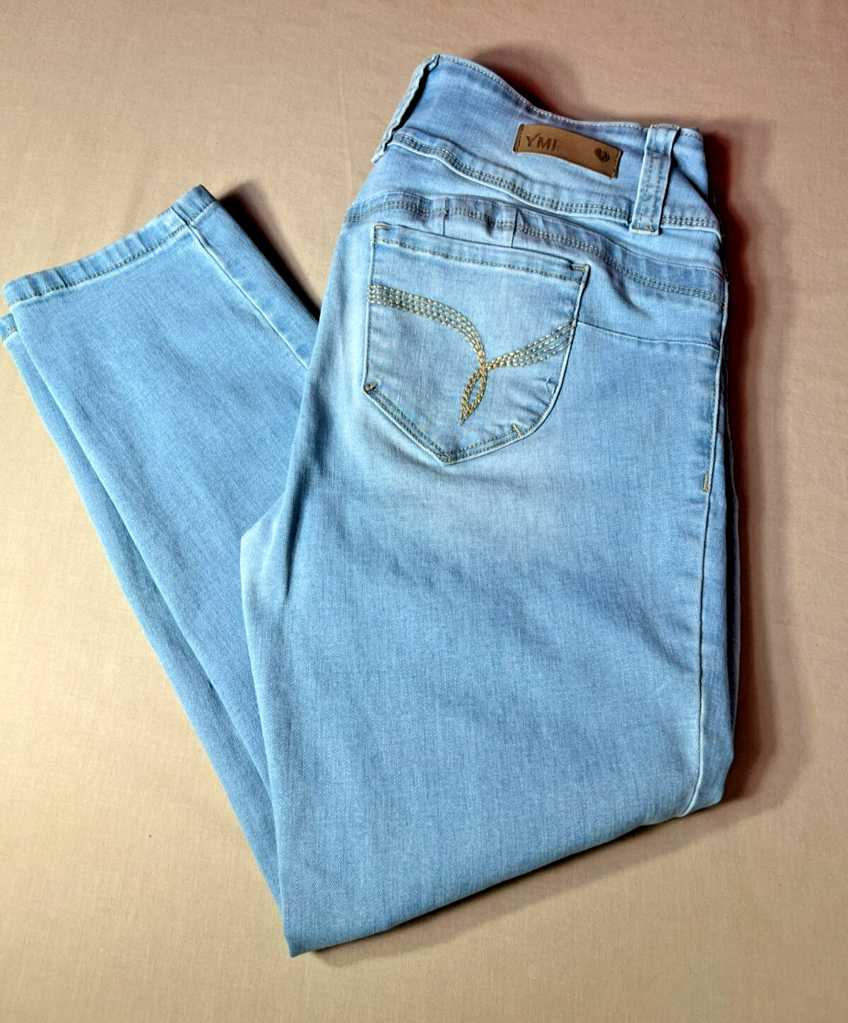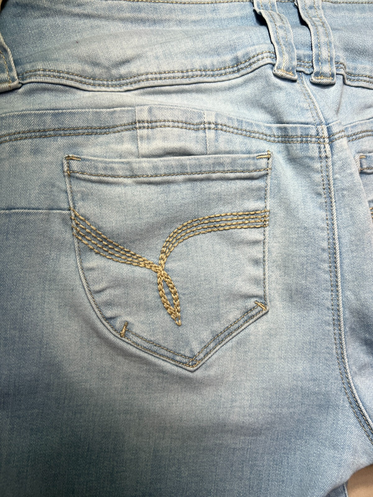 Jeans YMI Wanna Betta Butt Light Blue distressed Three button with Brand Detail