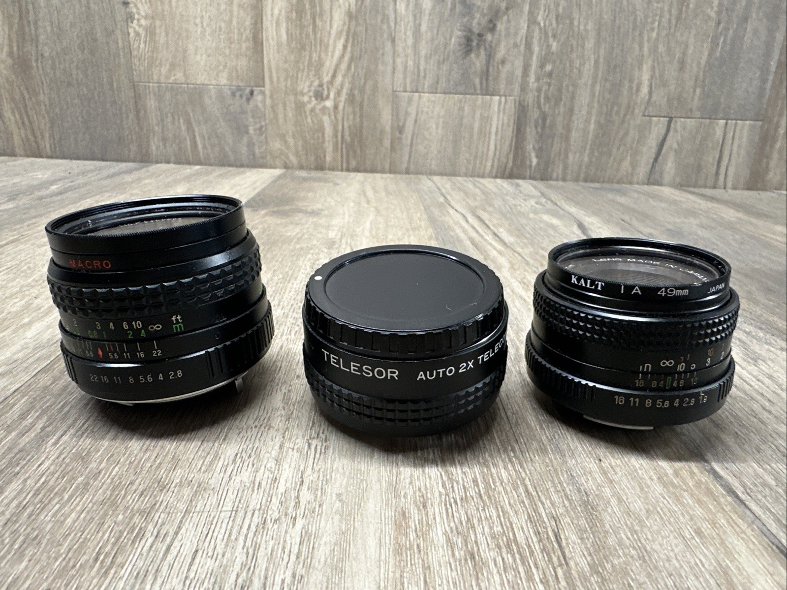 VTG Chinon CP-5s 35mm SLR Film Camera w/ 2 Lenses And Teleconverter - Untested
