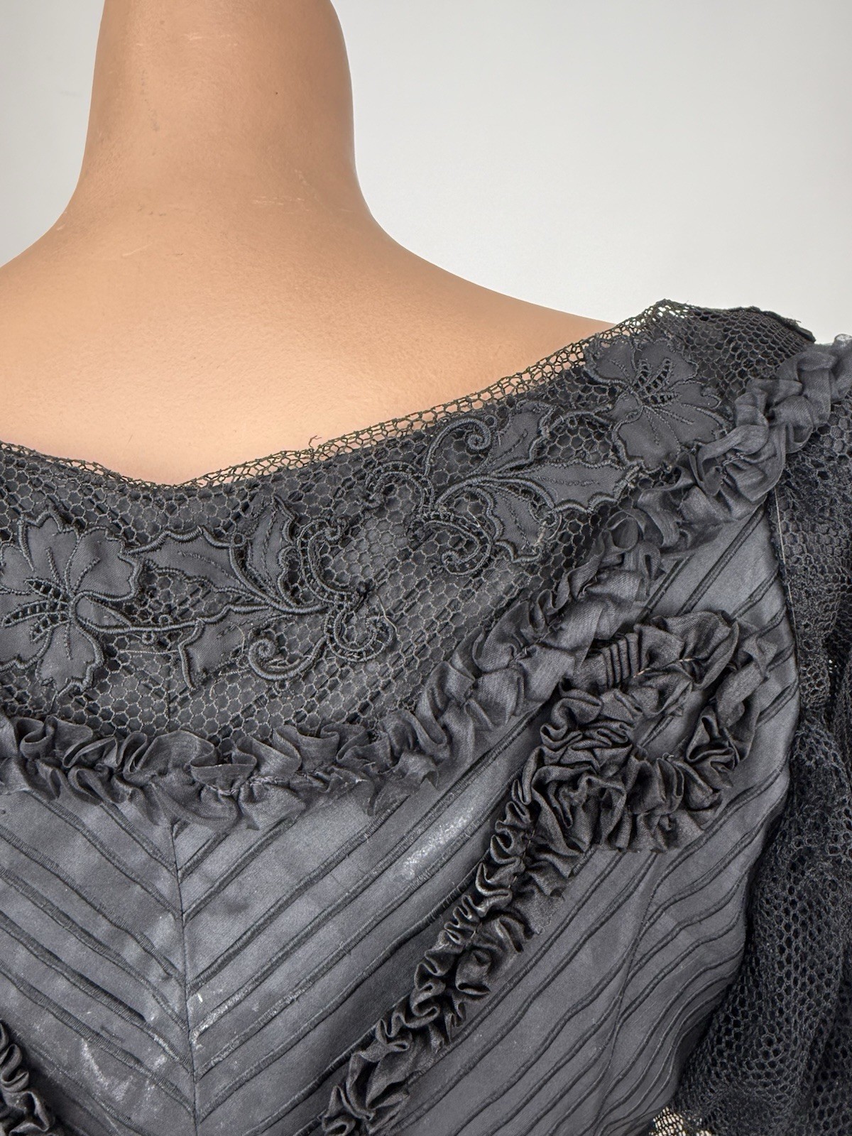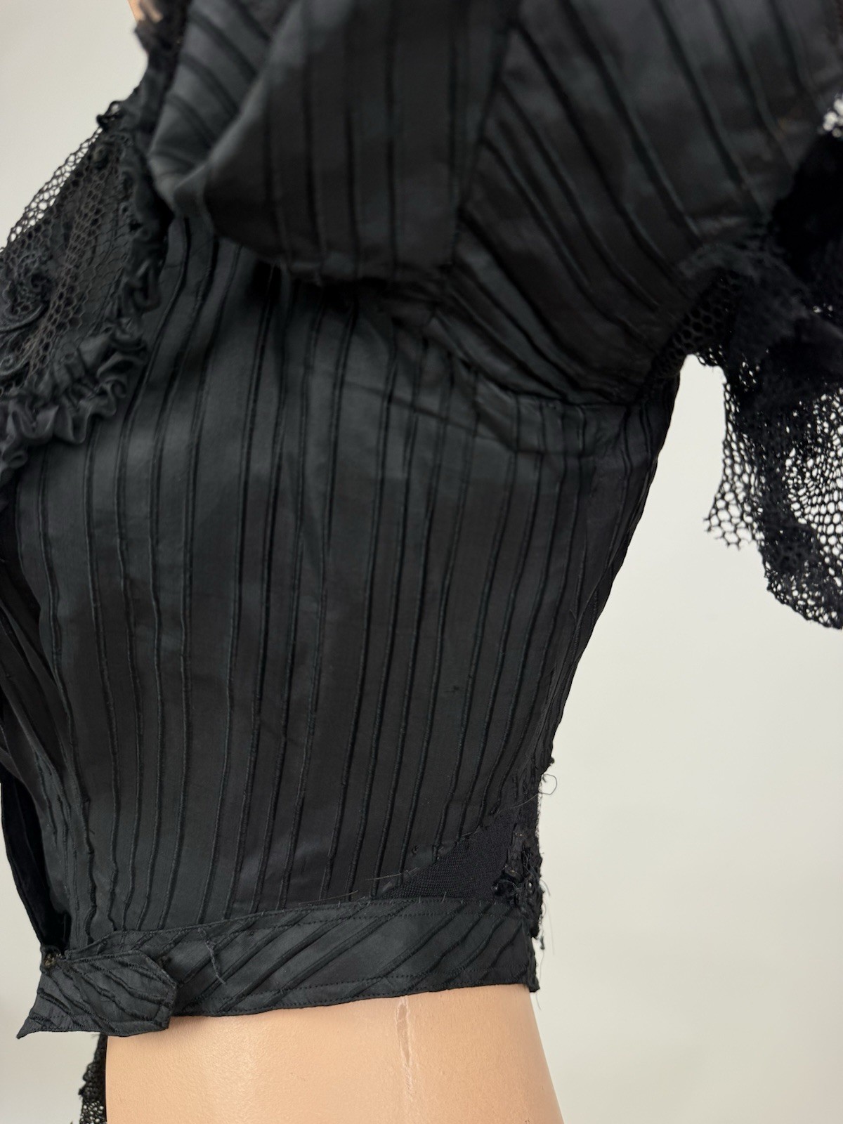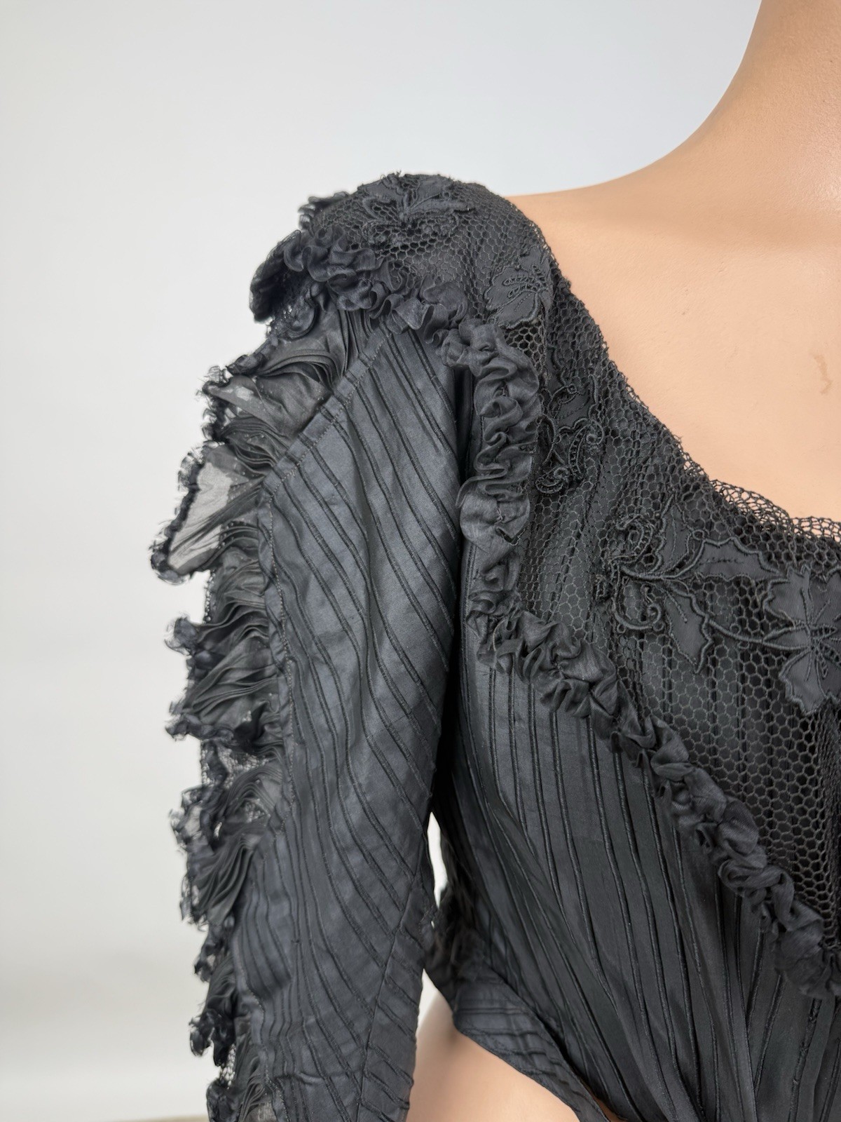 как выглядит Antique Victorian 1890s Black Silk Net Lace Blouse Floral Applique Embroidery фото