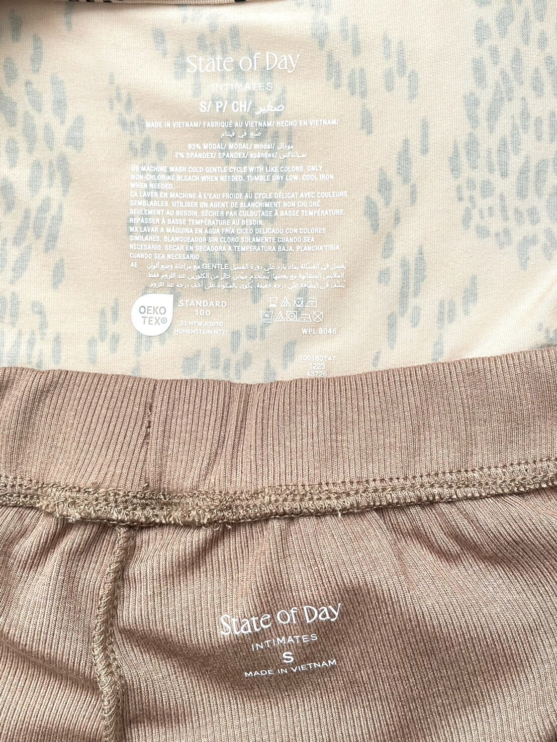 как выглядит NWT State of Day S Short-Sleeve Notch Collar Ribbed Pants Pajama Set Assorted фото