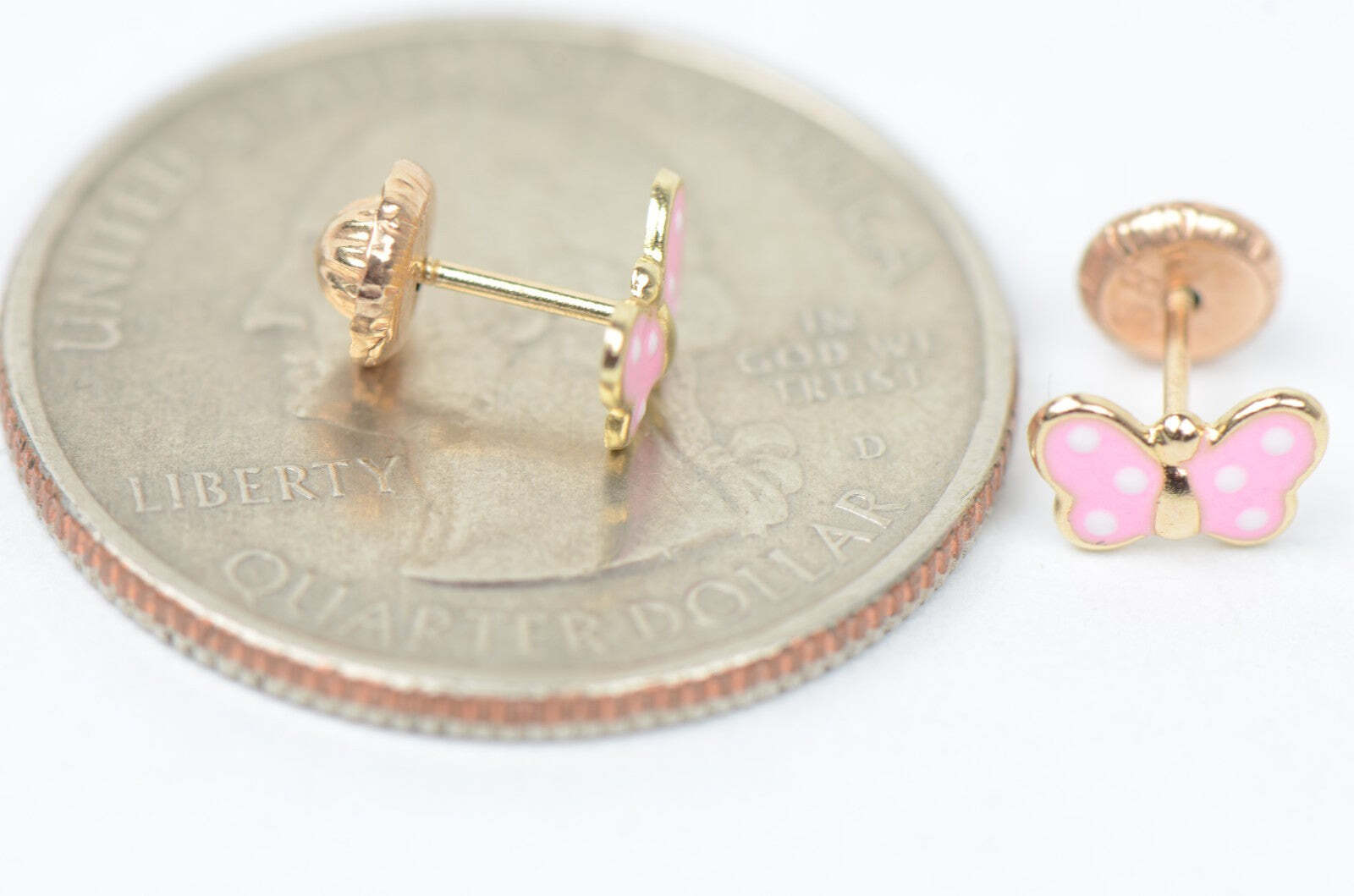 14k Yellow Gold Enamel Butterfly Baby earrings with Screw Back
