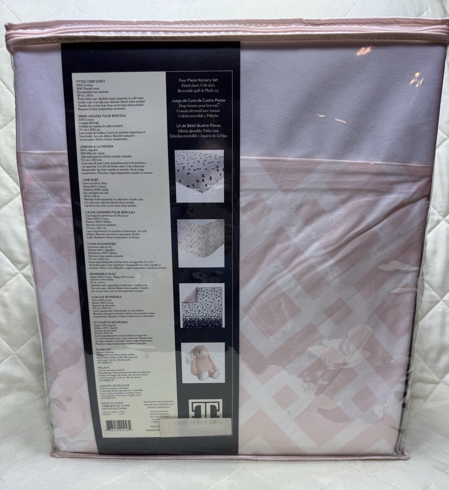 как выглядит Ivanka Trump 4pc Nursery BABY Crib Bedding Set Pink/White/Navy Plush Bunny NEW фото