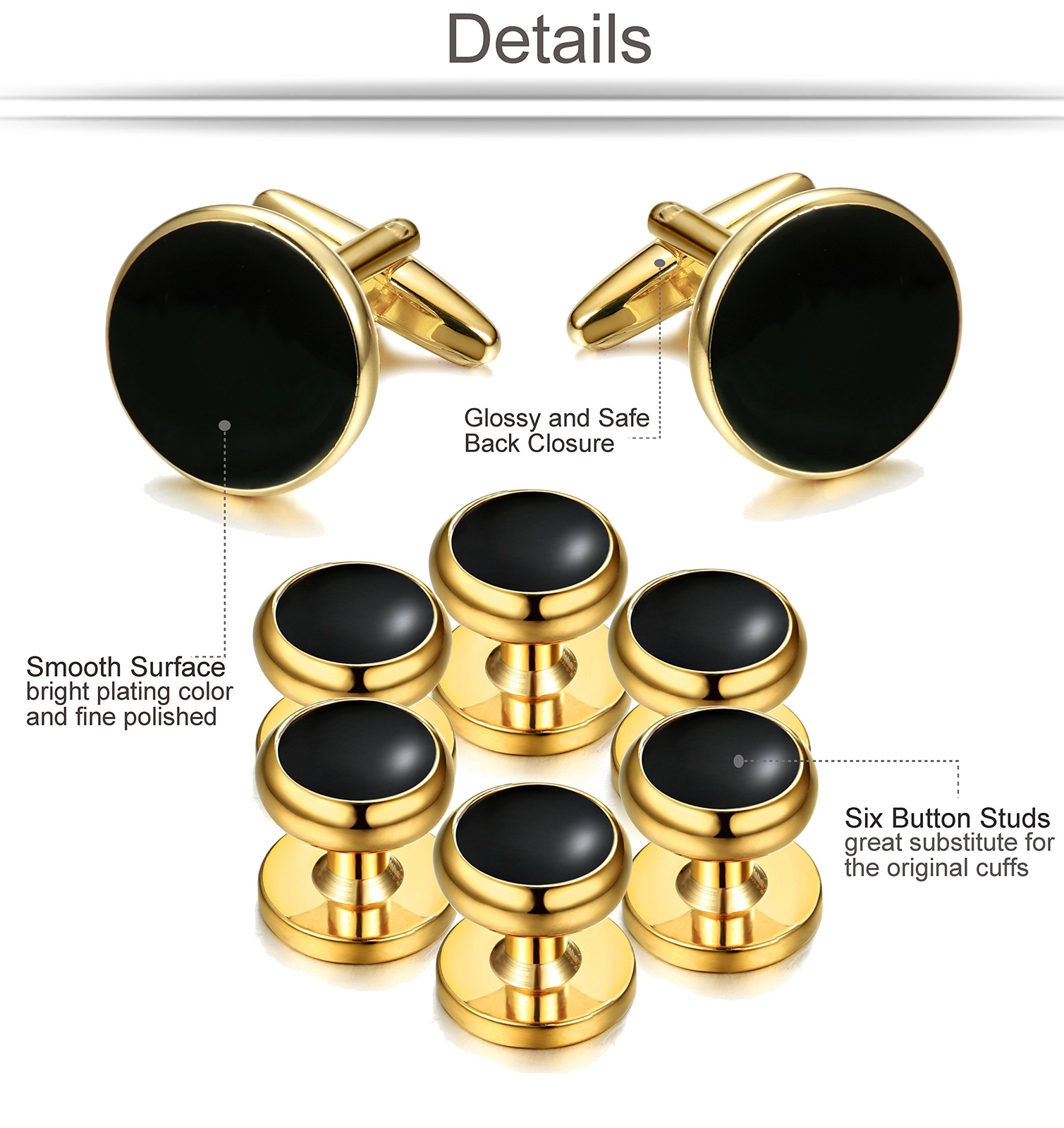 Gold/Black Stainless Steel Cufflinks and Studs Set for Tuxedo Wedding Business