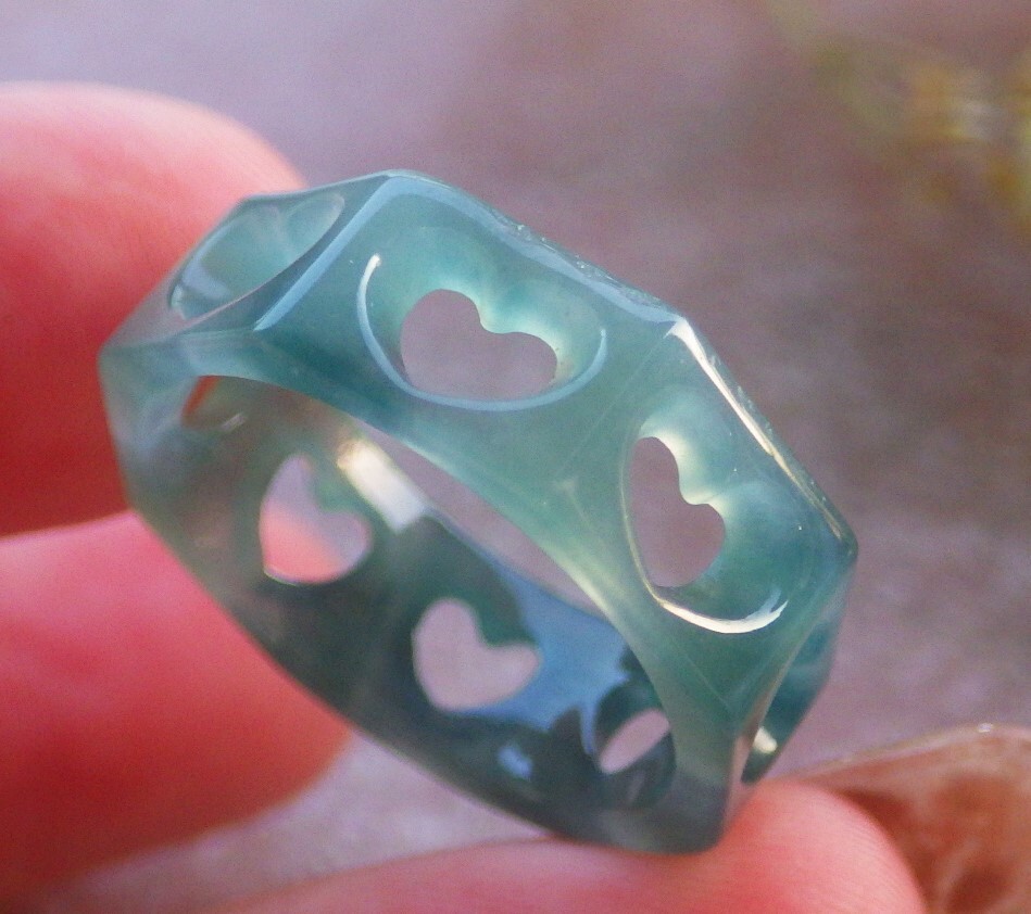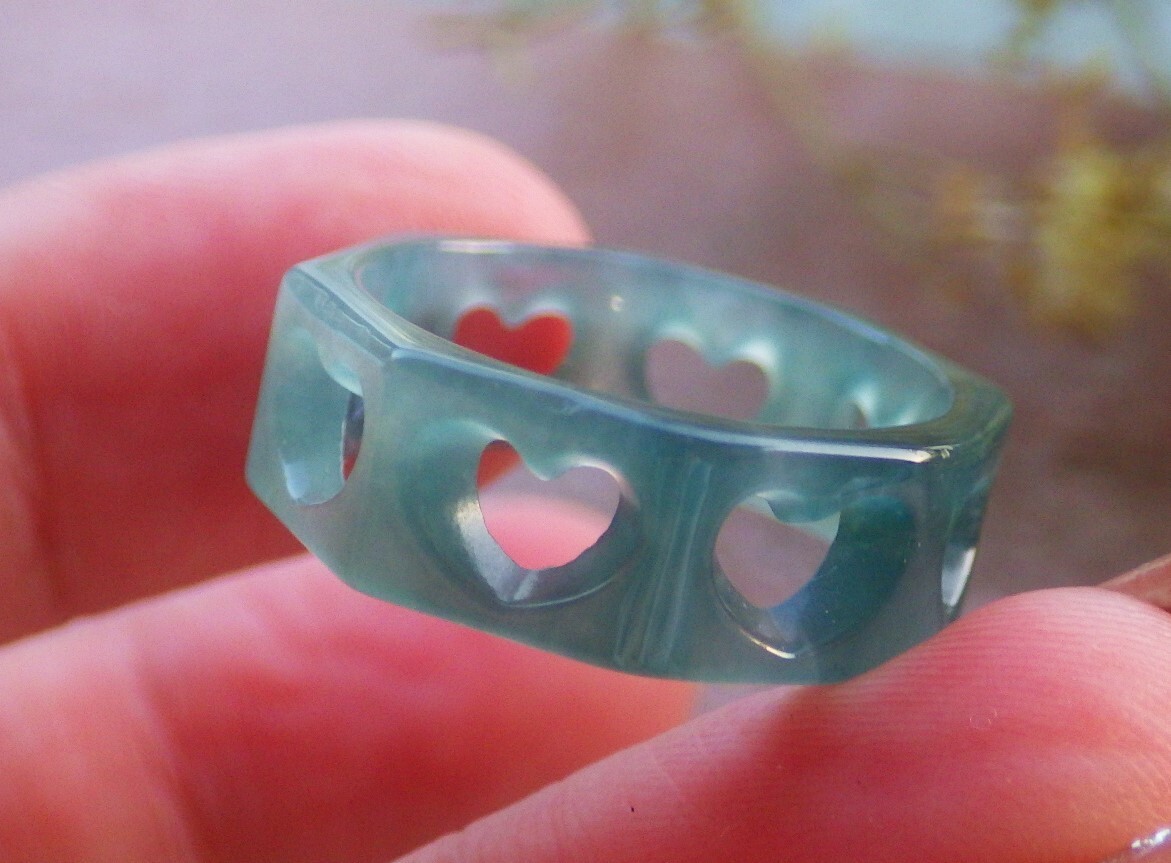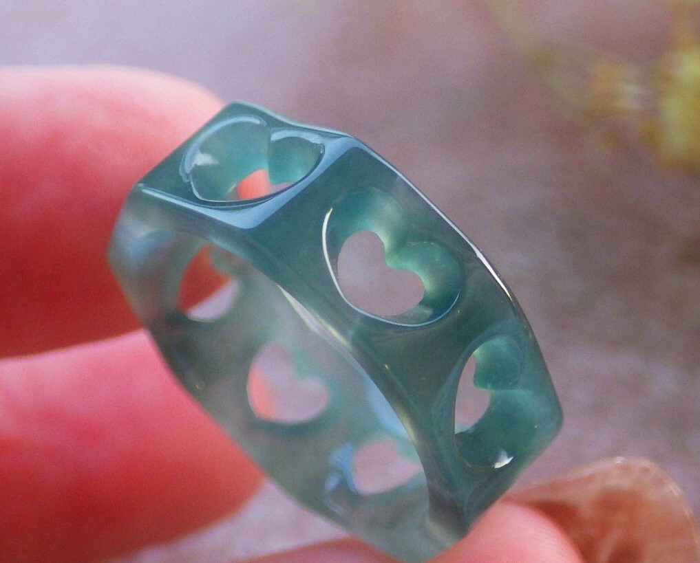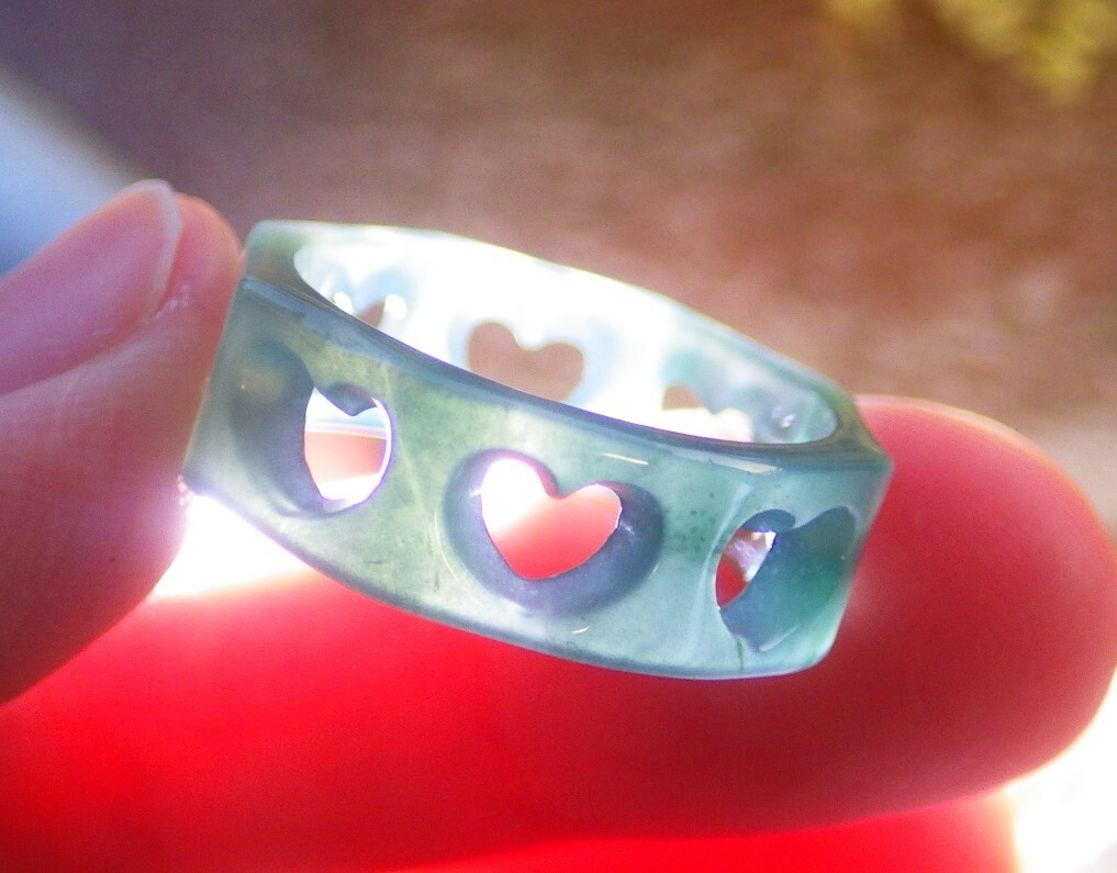 Video Certified Icy Blue Water 100 A JADE Jadeite Heart RING USA 7.75 941491