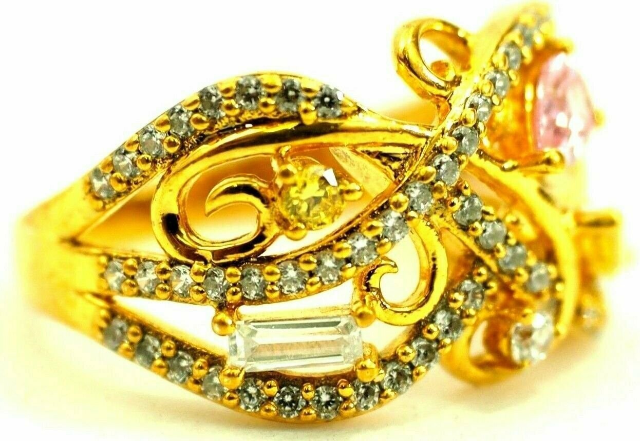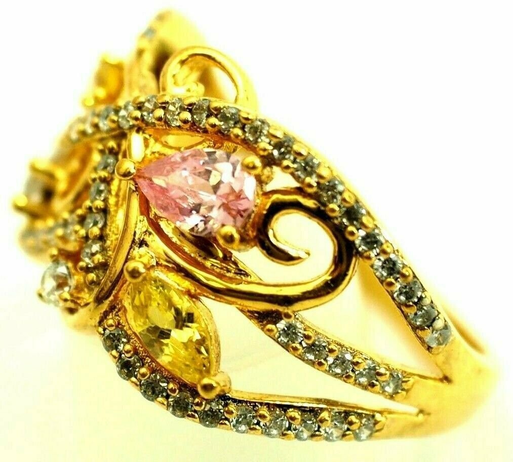 Adorable 72 stone Cubic Zirconia Ring Vermeil Gold over Sterling Silver Size 9