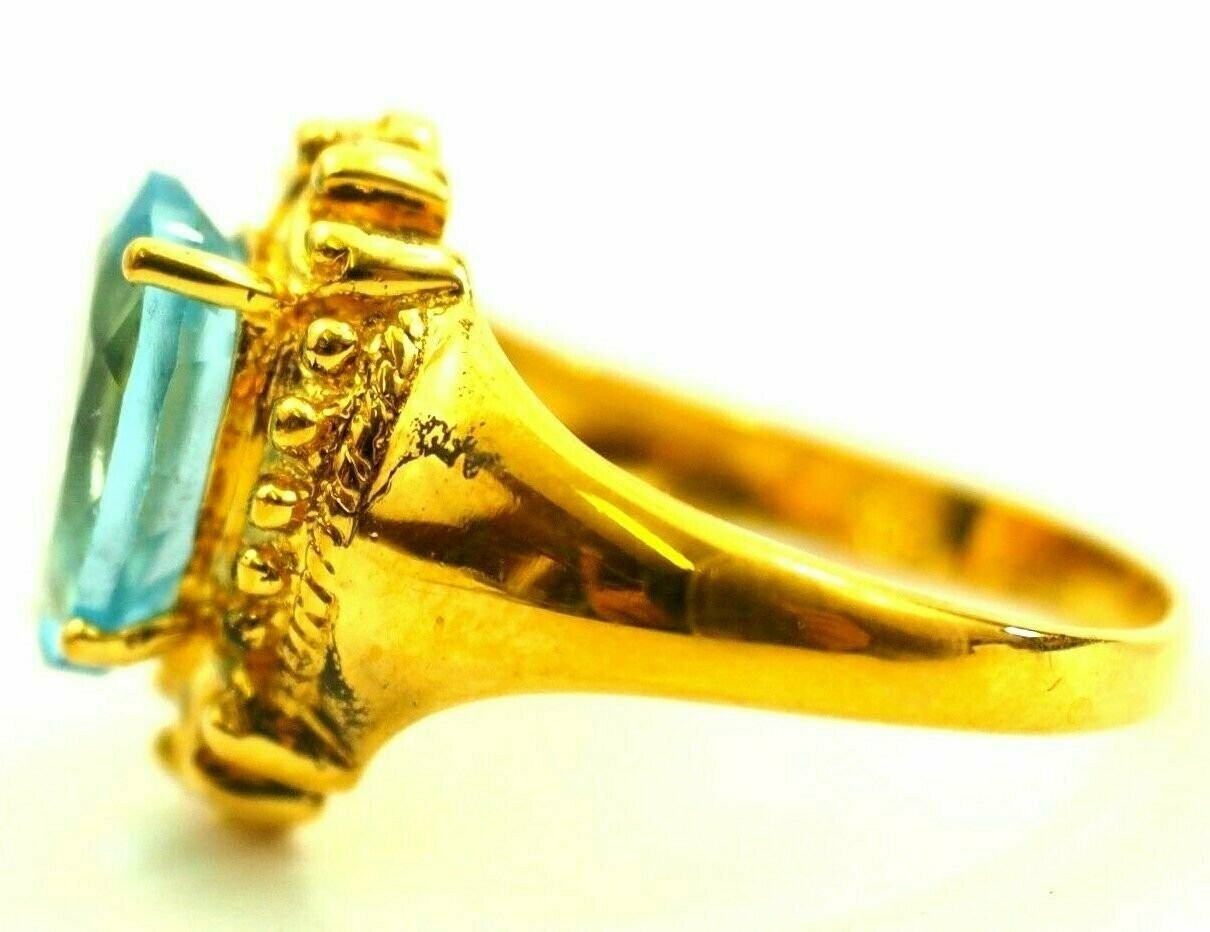 Ladies Pear Shape Blue Topaz Ring Vermeil Gold over Sterling Silver Size 7.5