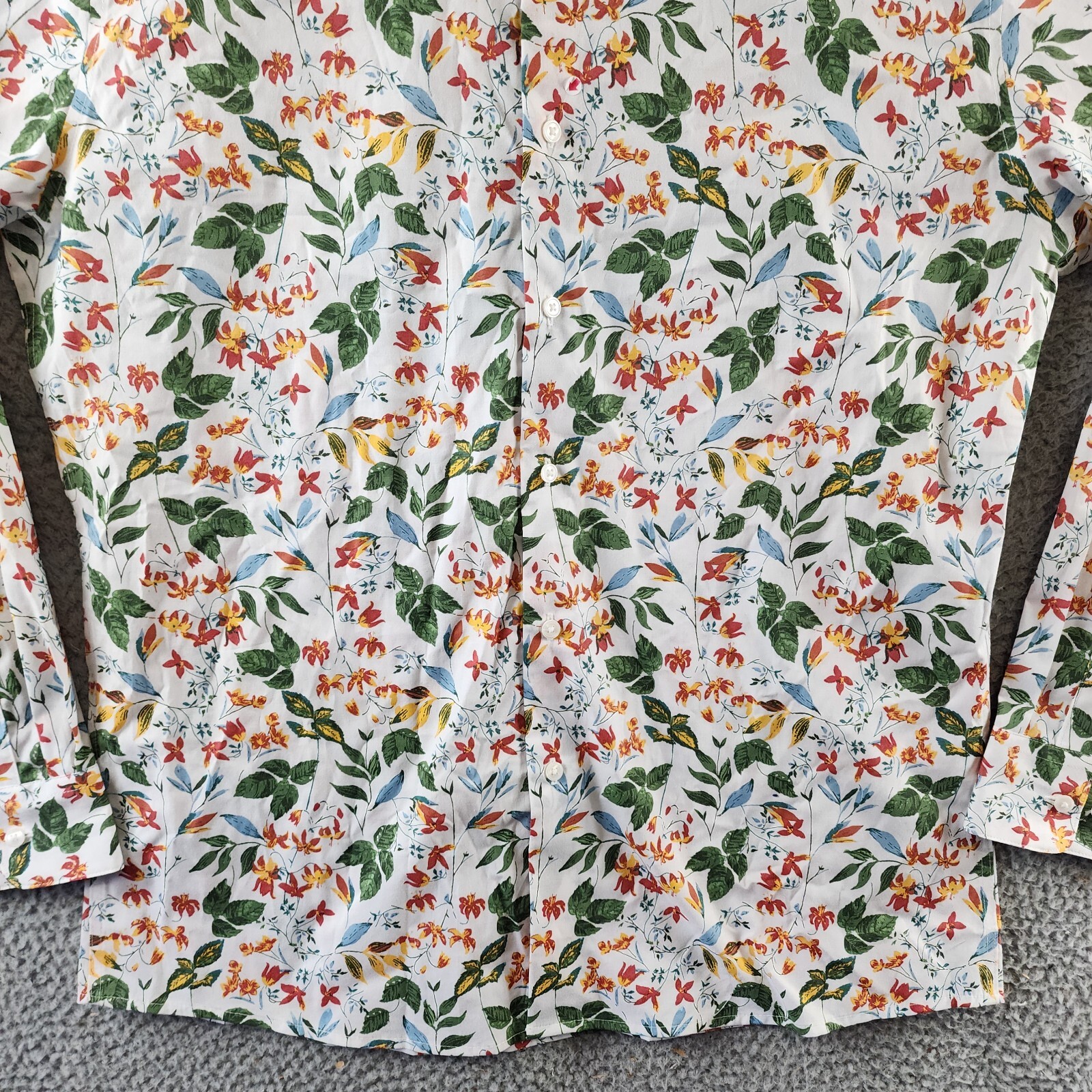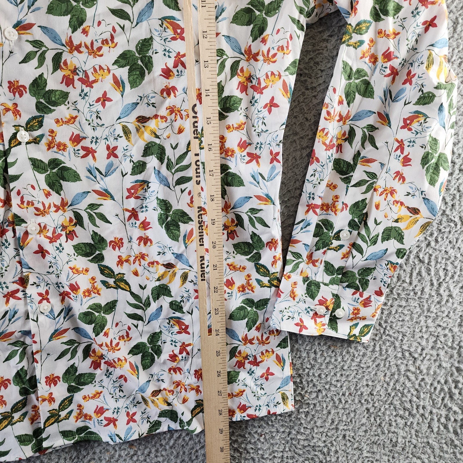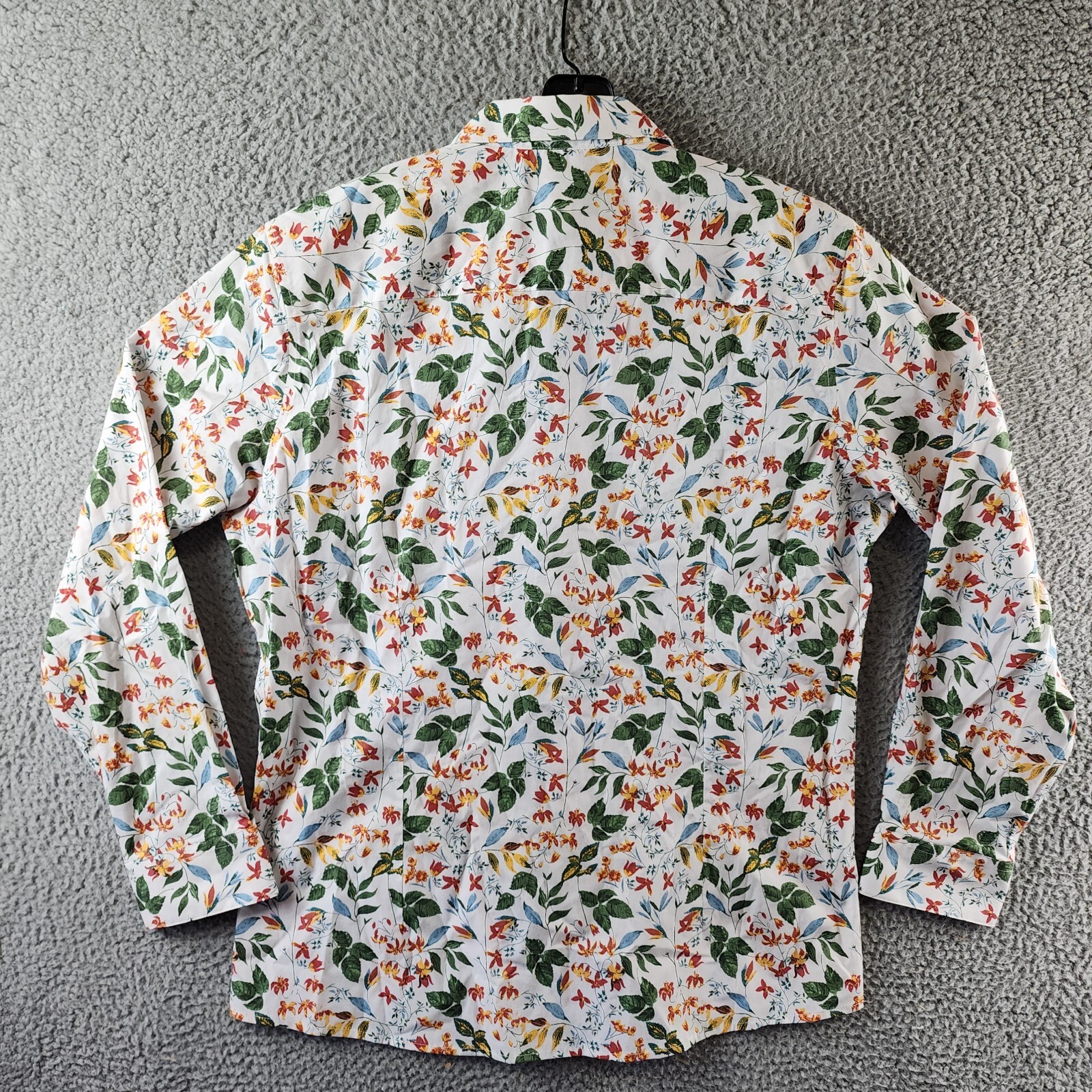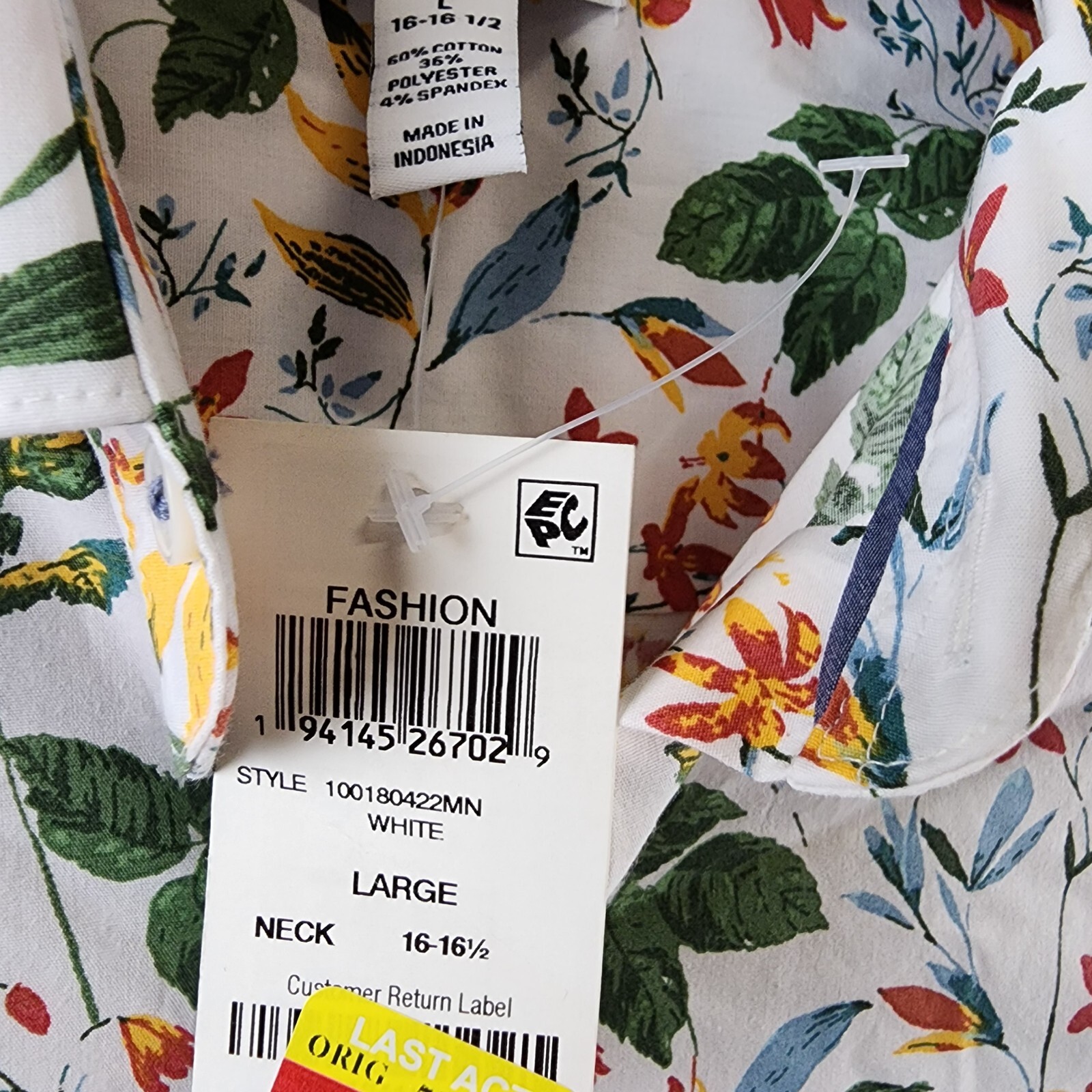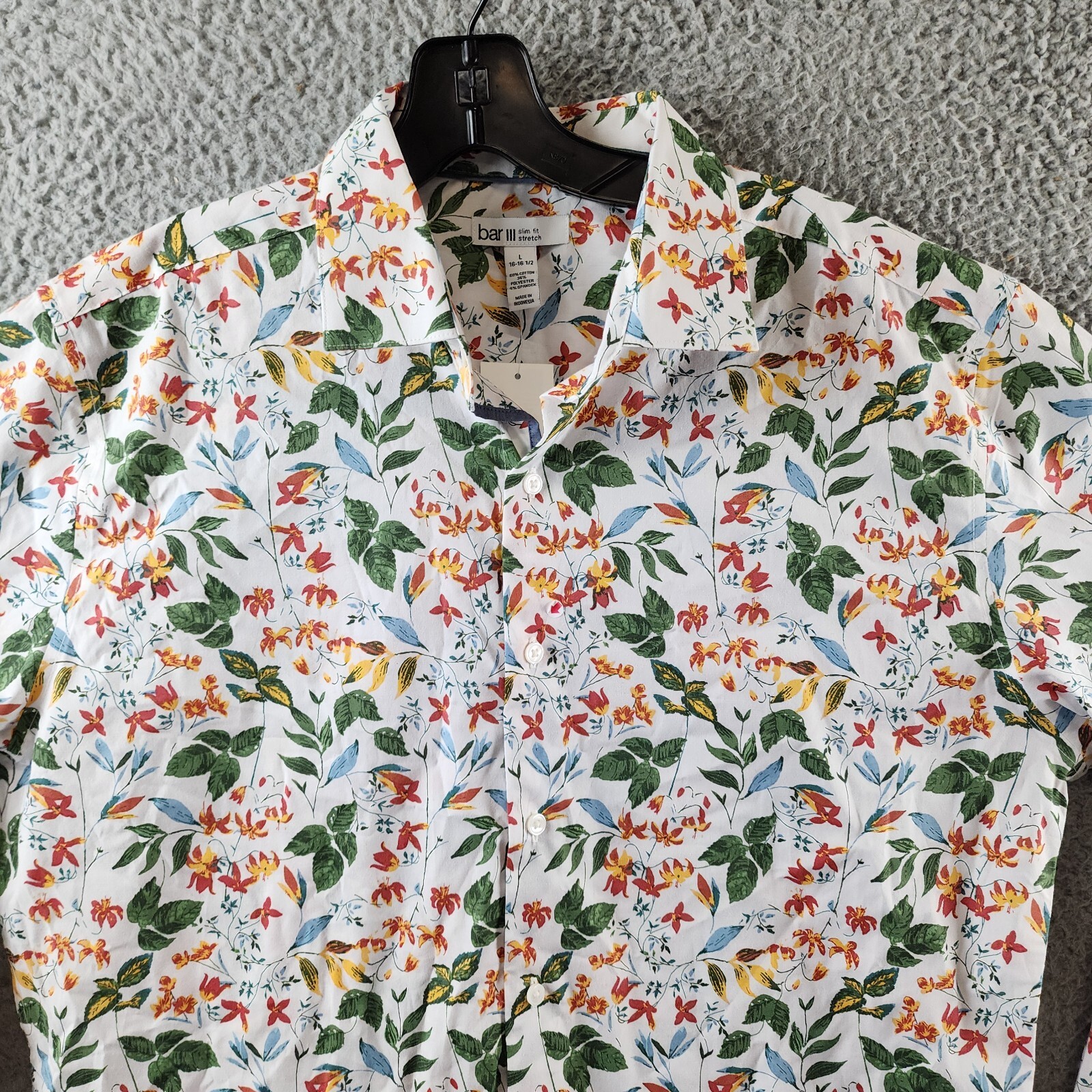 как выглядит Bar III Slim-Fit Bold Ivy Dress Shirt Mens L White Multi Spread Collar Stretch фото