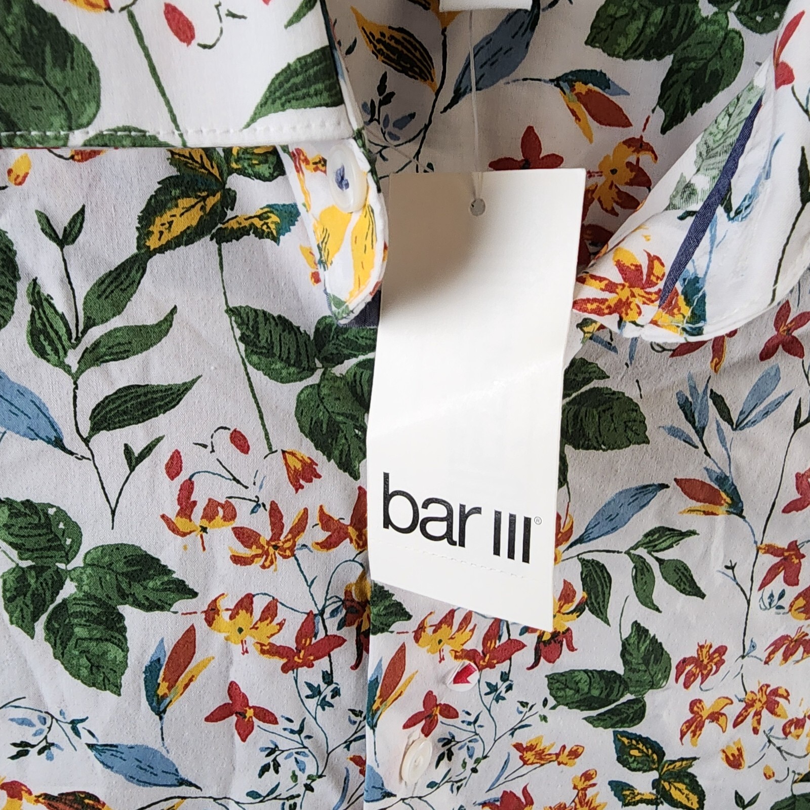 Bar III Slim-Fit Bold Ivy Dress Shirt Men's L White Multi Spread Collar Stretch