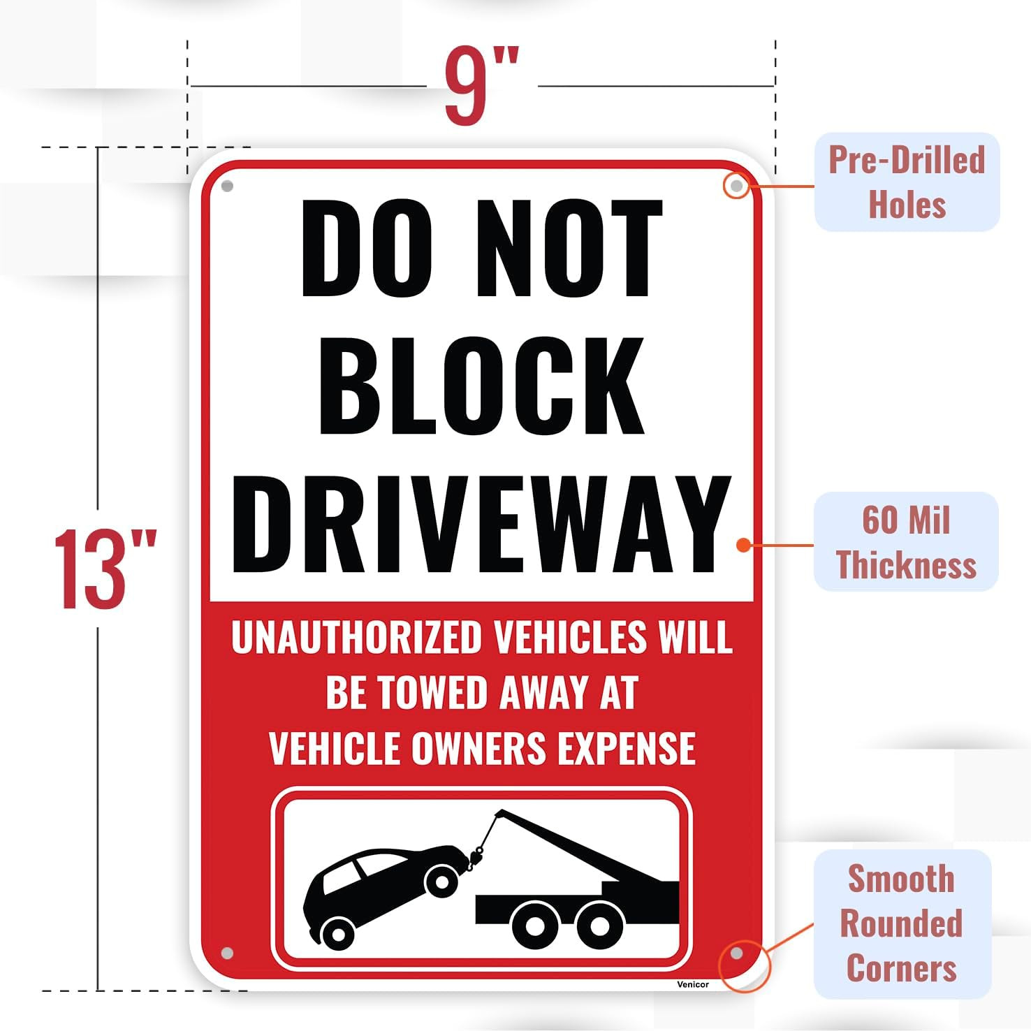 1PC Sign 13 x 9 Inches - Aluminum - No Parking Dont Do Not Block Driveway