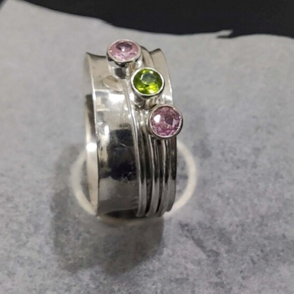 как выглядит Amethyst,Peridot Gemstone 925 Sterling Silver Spinner Ring Jewelry Gift D-619 фото