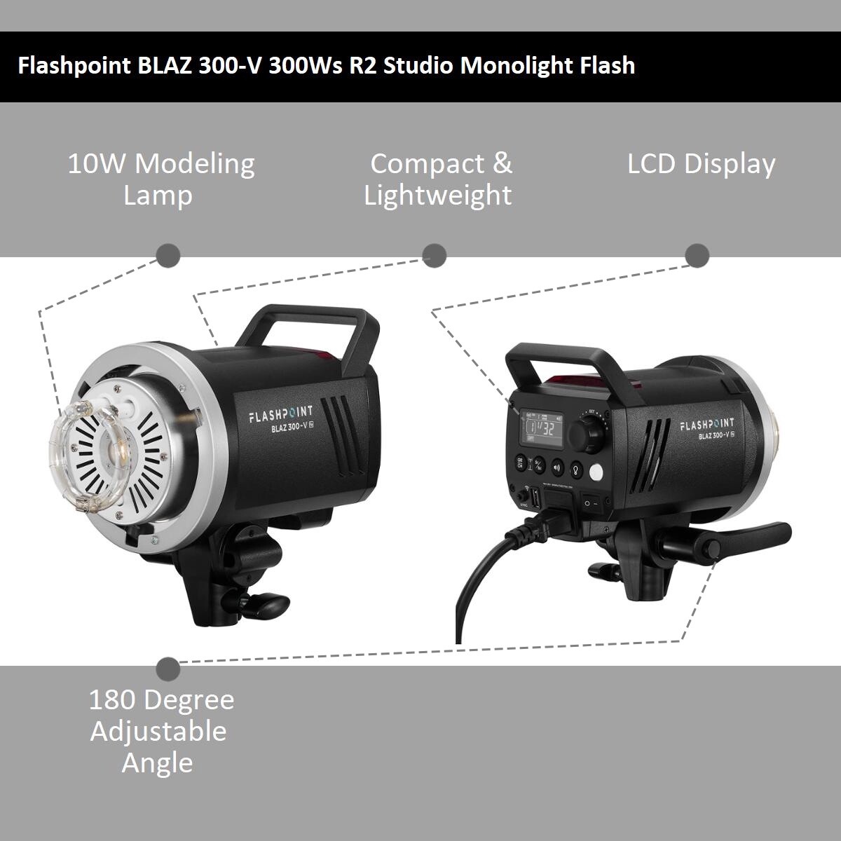 Flashpoint BLAZ 300-V 300Ws R2 Studio Monolight Flash, 10W LED Lamp,Bowens Mount