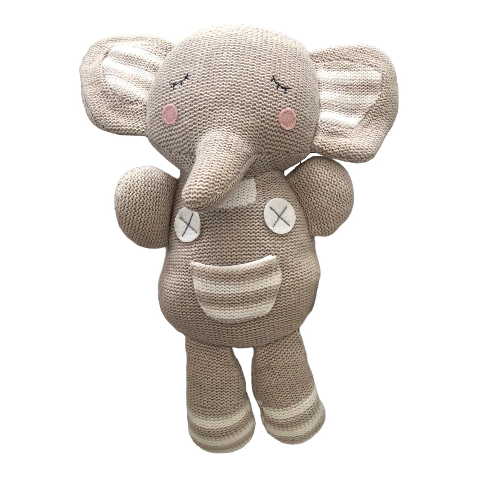 LIVING TEXTILES Australia Knitted Theodore Elephant Gray White Plush Rattle