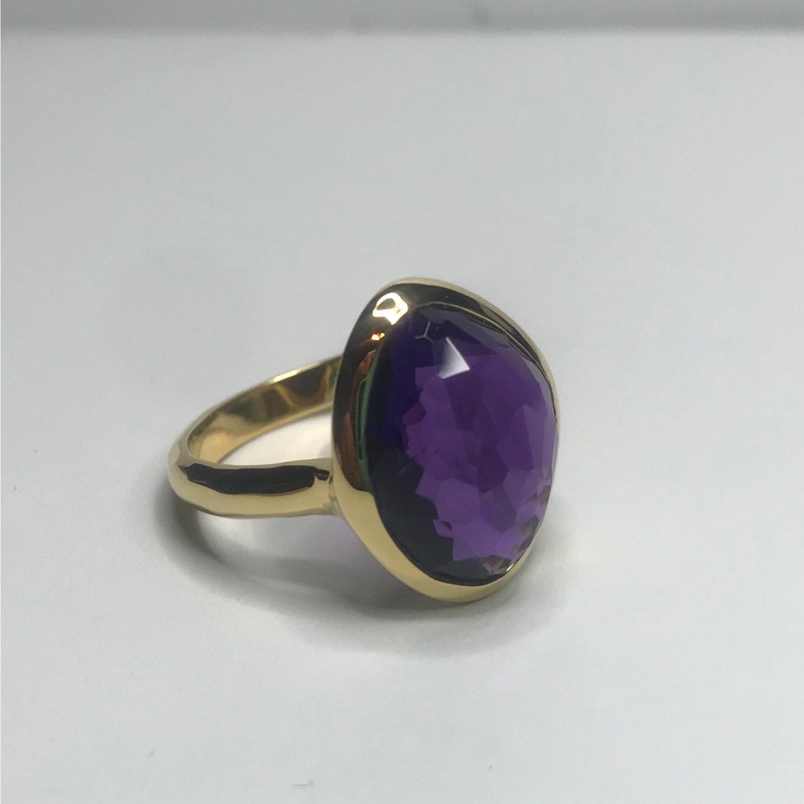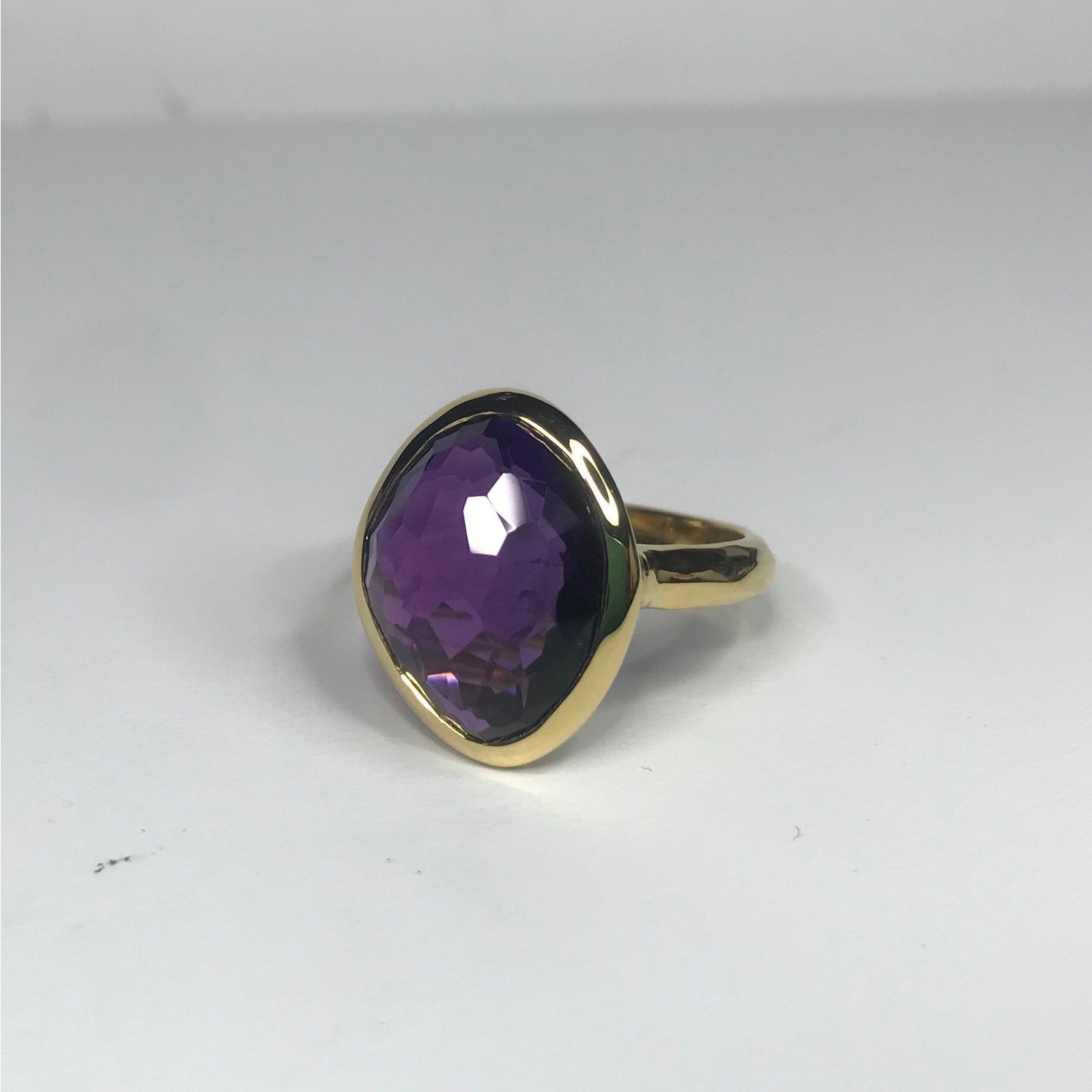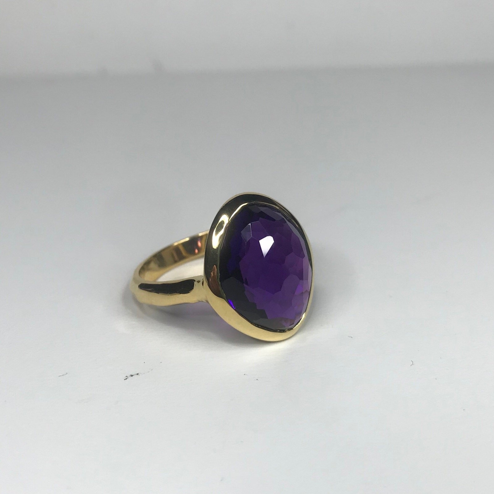 Gorgeous 5ct Genuine Amethyst Ring 18k Gold Vermeil Abstract Cut Amethyst Ring